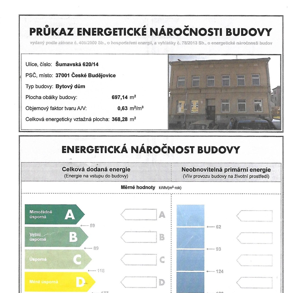 - Energetický ukazatel podle vyhlášky: č. 78/2013 Sb.