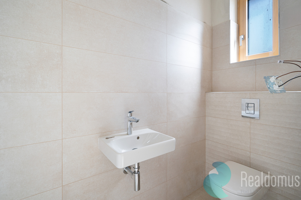 Dům je postaven z kvalitních tradičních materiálů s důrazem na detail a dlouhou životnost. Dřevohliníková okna a vstupní dveře, betonová krytina, silikonová fasáda, to vše podtrhuje precizní zpracování celého domu. V ceně domu je dokončení podlah, dveří dle výběru.