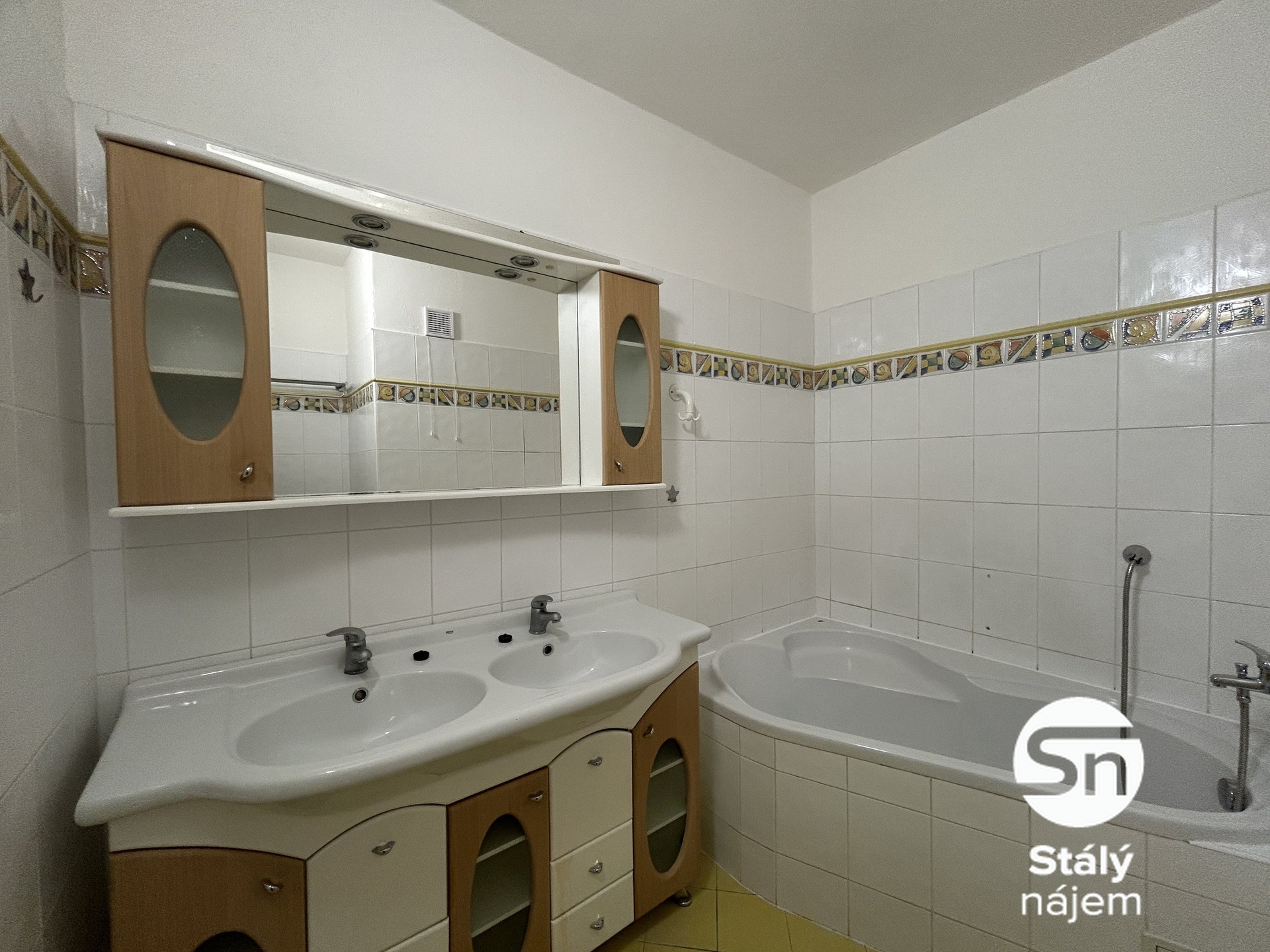 Interiér bytu je prakticky řešen a nabízí úložný prostor díky vestavěné skříni. Srdcem domova je kuchyně vybavená linkou s horkovzdušnou troubou a atypickou kombinací dvouplotýnkových vařičů (sklokeramika i elektřina). V koupelně vás potěší rohová vana, která je jako stvořená pro relaxaci po náročném dni, zde ani umyvadlové skříňky.