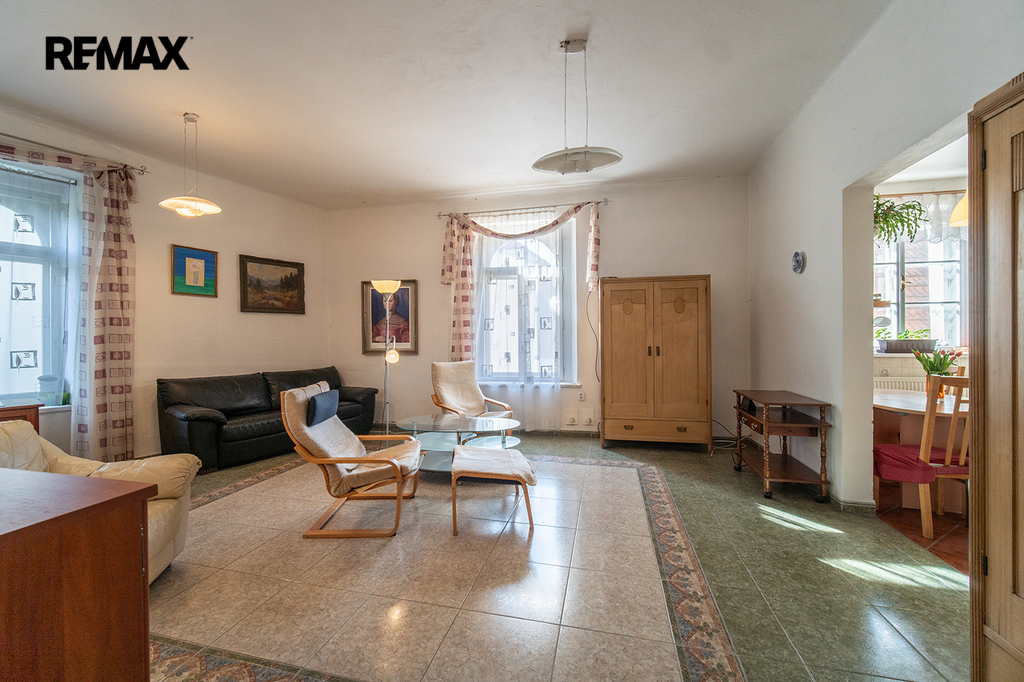 Prodej části domu - 2 bytů (3 + 1, 1 + 1), půdy a 2 garáží přímo na náměstí v Českém Brodě