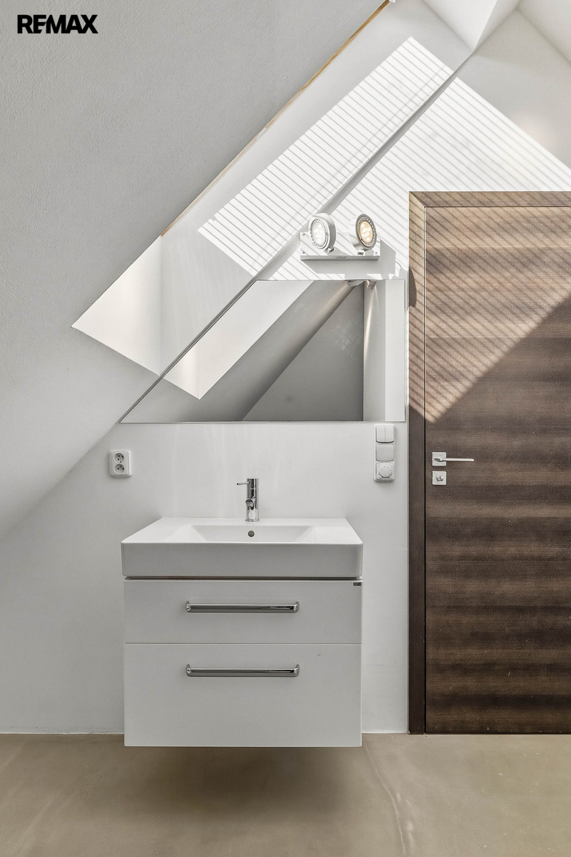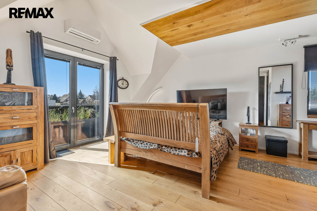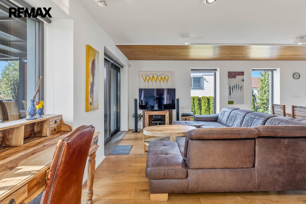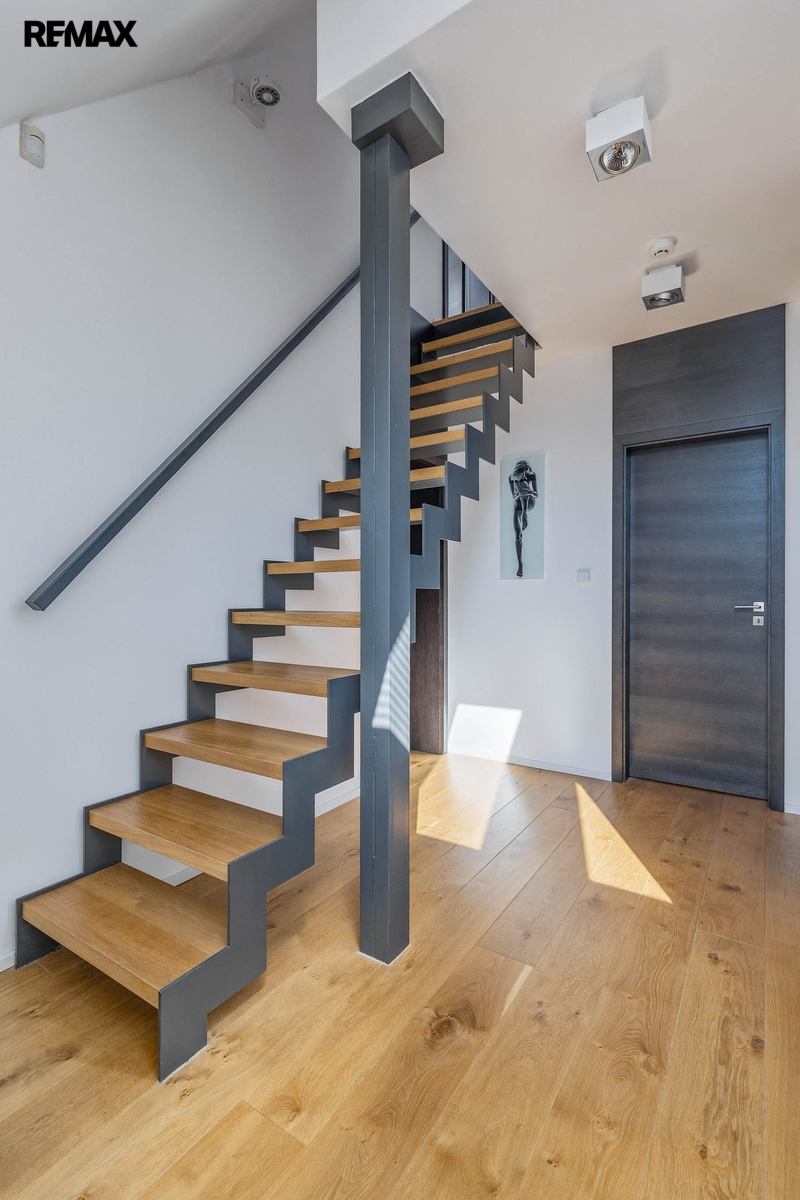 Dispozice domu nabízí dostatek prostoru pro rodinu, práci i odpočinek. Samozřejmostí je hlavní ložnice se šatnou, několik dalších pokojů, pracovna a tři koupelny, které zajišťují maximální komfort a soukromí.