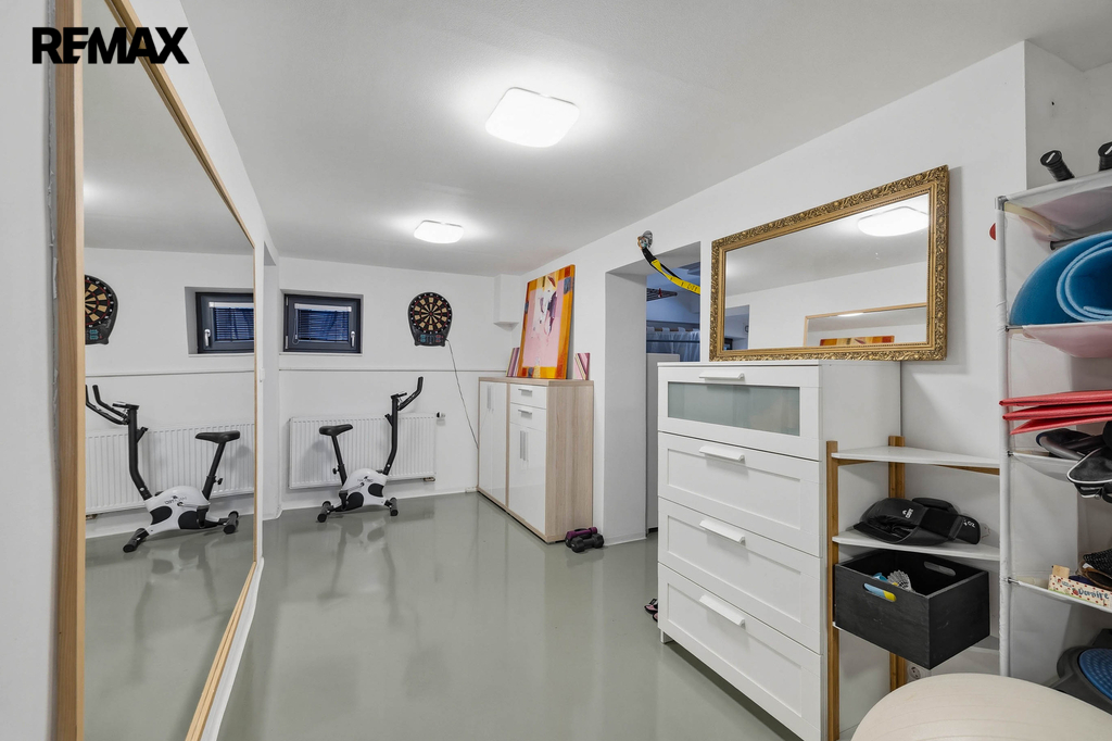 Součástí domu je také polosuterén, který nabízí široké možnosti využití – od soukromé posilovny, přes hernu až po relaxační zónu.