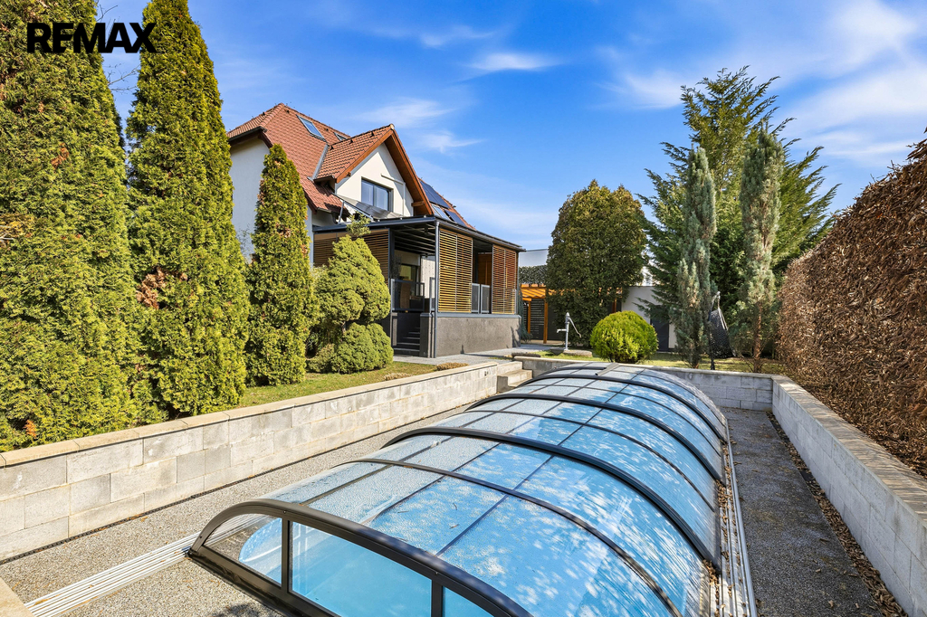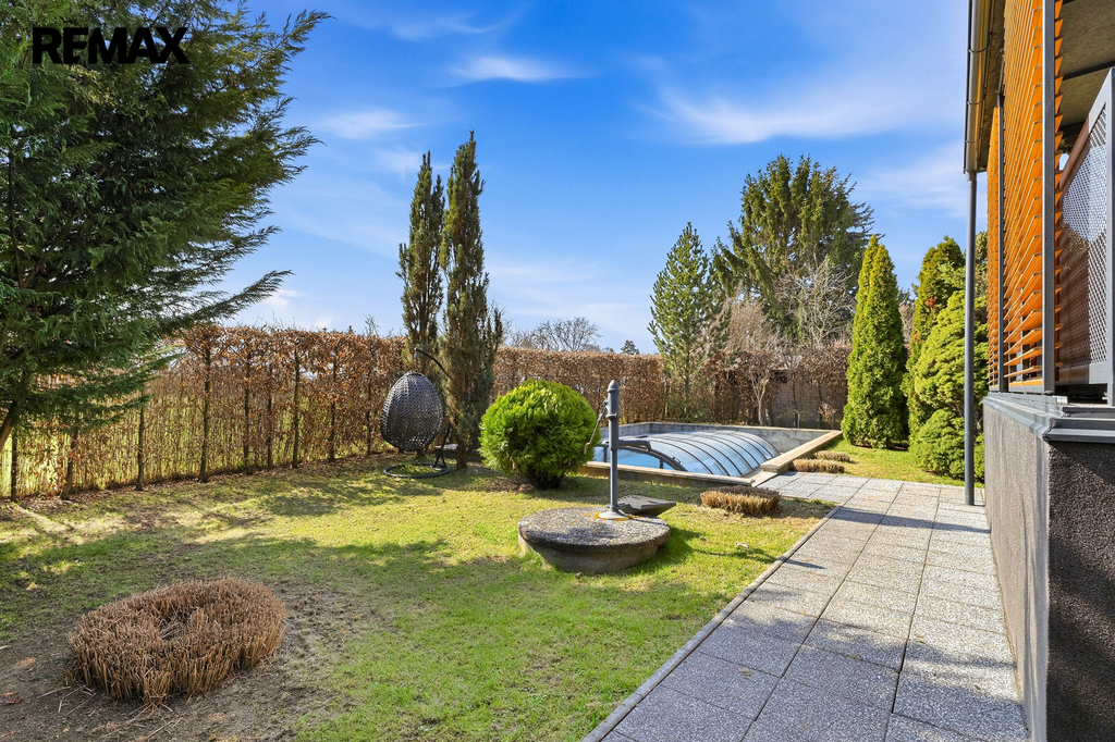 Na pozemku se nachází zahrada s bazénem, která poskytuje ideální prostor pro odpočinek i neformální setkání. Samozřejmostí je garáž a dostatek úložného prostoru.