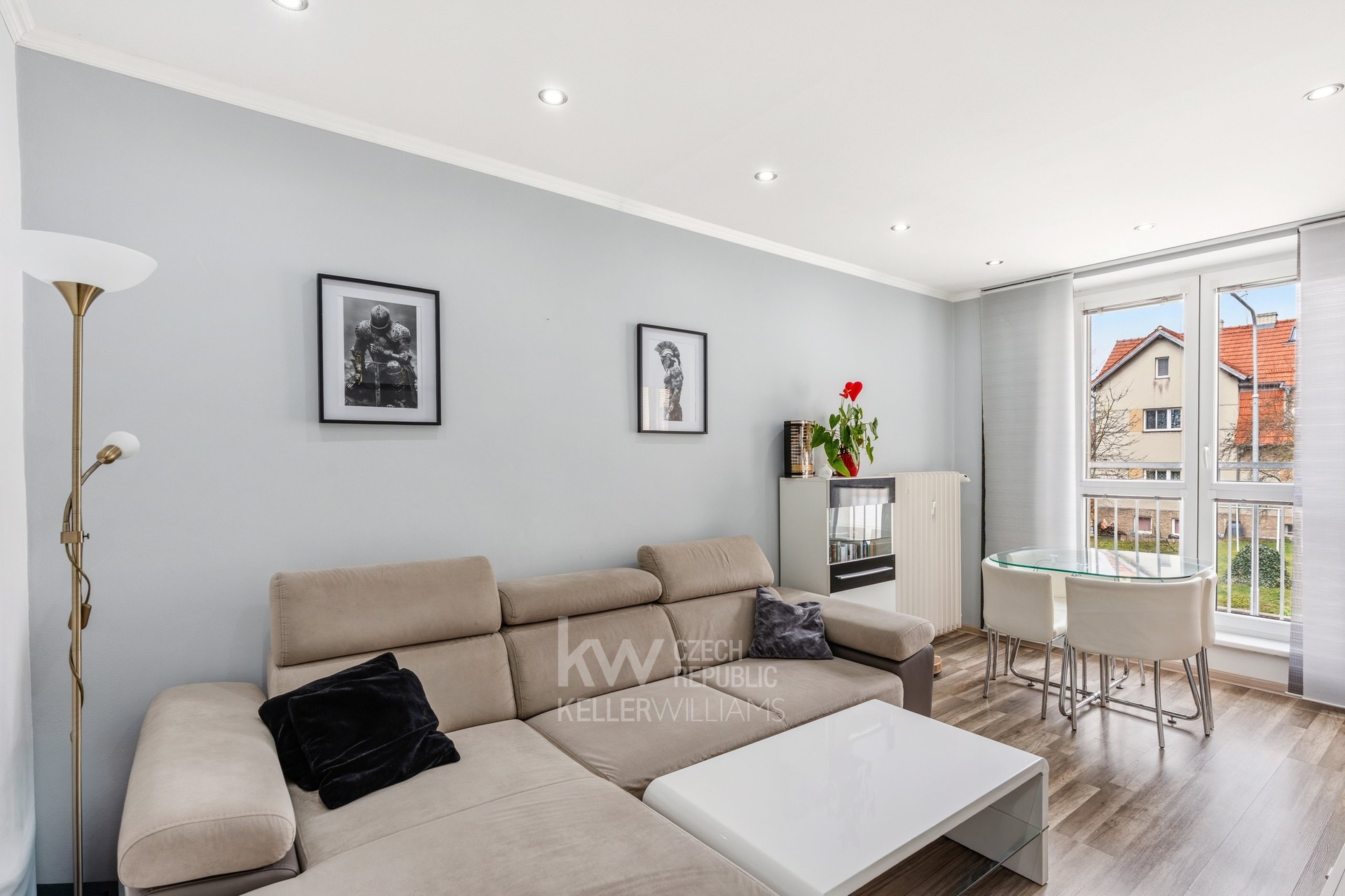 Velkým benefitem jsou francouzská okna v obývacím pokoji a ložnici, která prostor krásně prosvětlují a dodávají mu vzdušnost i příjemnou atmosféru.