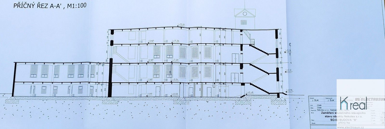 Nabízíme k pronájmu nebytový prostor o velikosti 2063 m2 (budova B, 1. podlaží) v areálu firmy NEKOTEX s.r.o. vhodný pro skladování nebo výrobu v centru Chebu (ul. Pekařská). Areál je plně fungující. Nájem 46,-Kč/m2/měsíc, bez DPH. Energie v objektu - elektřina se převádí na nájemce, voda se rozpočítává podle počtu osob pracujících u nájemce, topení (záloha 45,-Kč/m2/měsíc, bez DPH). Konstrukčně je budova postavena z monolitického železobetonového skeletu a obvodový plášť je zděný. Areál je přístupný dvěma vjezdy z toho jeden je určen pro kamiony. Výborná dopravní obslužnost - 4 km od dálnice D6. Provize za zprostředkování (1/2 studeného měsíčního nájmu). K dispozici od 10/2023. Ostatní informace na vyžádání v RK.
