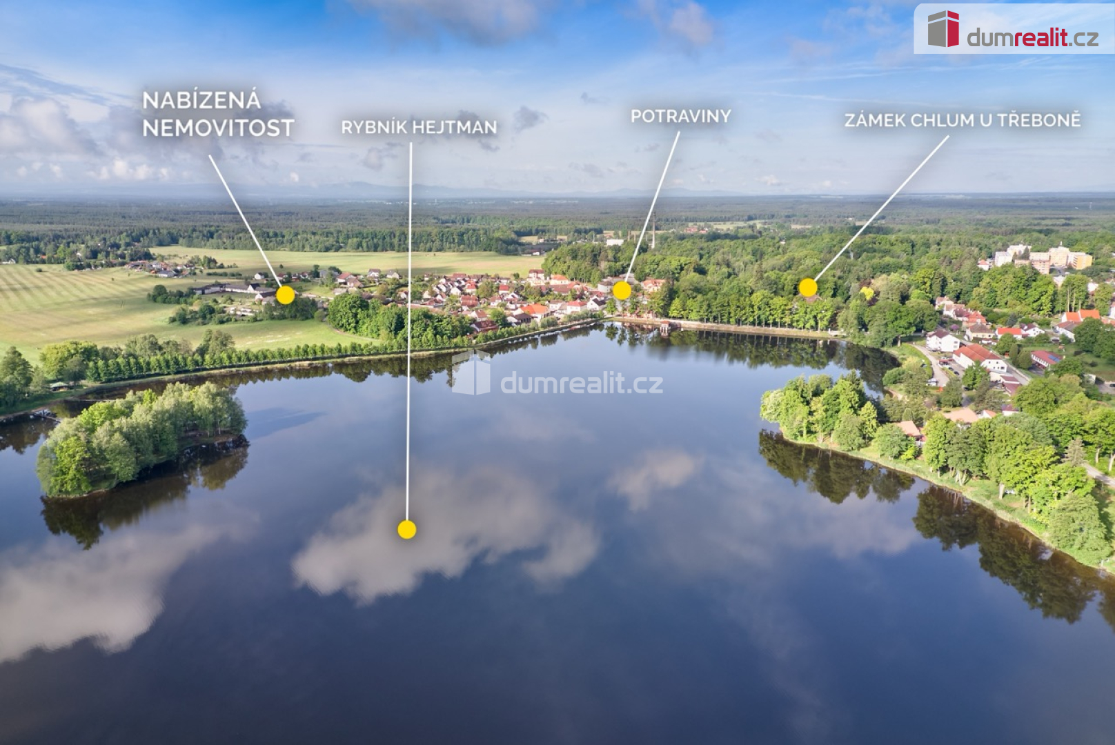Nemovitost se nachází v klidné a vyhledávané lokalitě s výbornou dostupností k rekreačním, kulturním i přírodním cílům. V docházkové vzdálenosti je rybník Hejtman s pláží a toboganem, historický zámek d’Este a v dosahu několika minut autem také lázeňské město Třeboň.