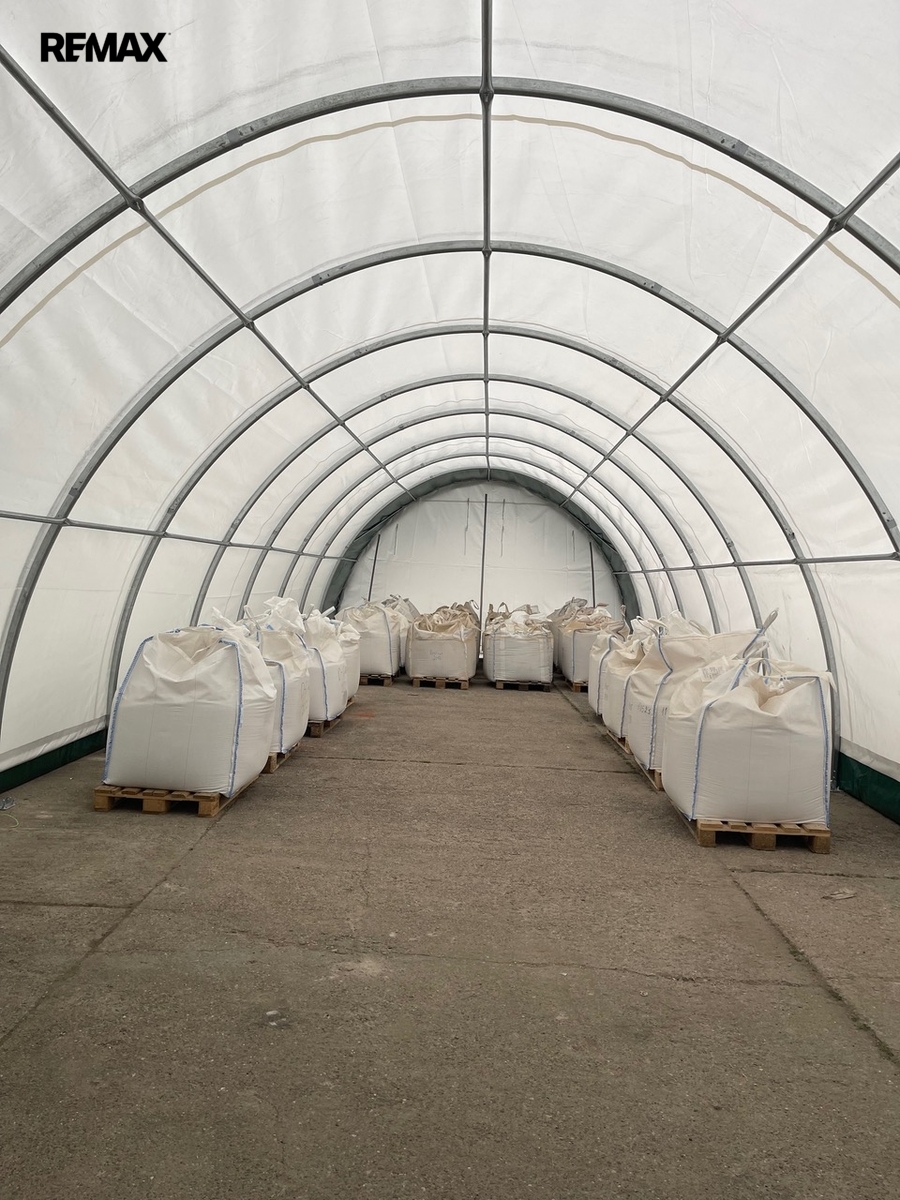 Sklad včetně kanceláře a haly je v uzavřeném areálu, kde jsou další budovy se zavedenými firmy a objekty. Sklad je opatřen kamerovým systémem a alarmem. Budova, kde se nachází hala s kanceláří momentálně prochází rozsáhlou rekonstrukcí a právě se připravuje nová fasáda včetně zateplení. Venkovní oblouková plachtová hala má rozměry 6,1x13,8x 3,6 m (š x d x v). Dále je možné využívat přilehlé venkovní prostory.