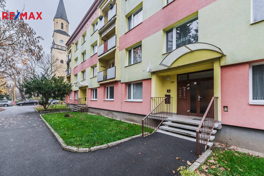 Byt v osobním vlastnictví je po částečné rekonstrukci a nachází se v panelovém bytovém domě v posledním patře, tj. 4. nadzemní podlaží.