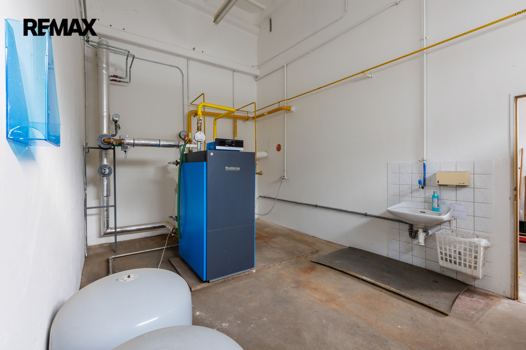 - 150 kW plynový kondenzační kotel Buderus stáří 2 roky / radiátory (hala) a plynový kotel Viessmann (kanceláře)