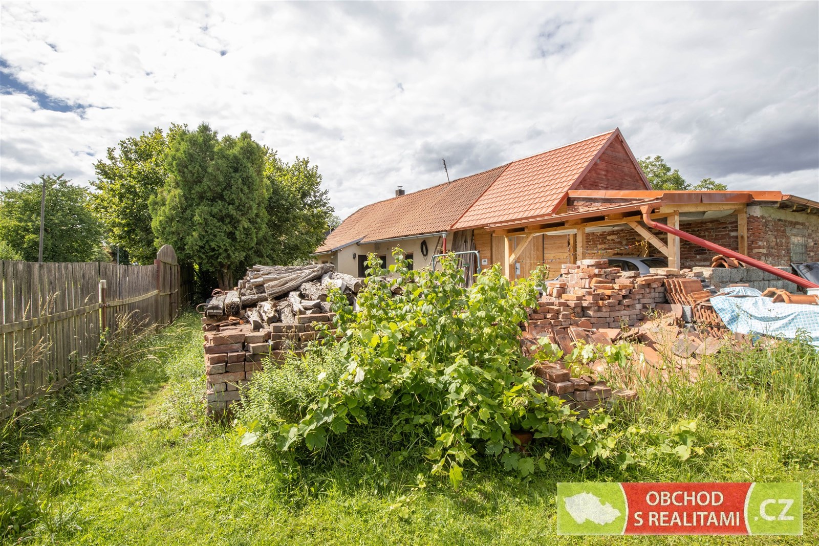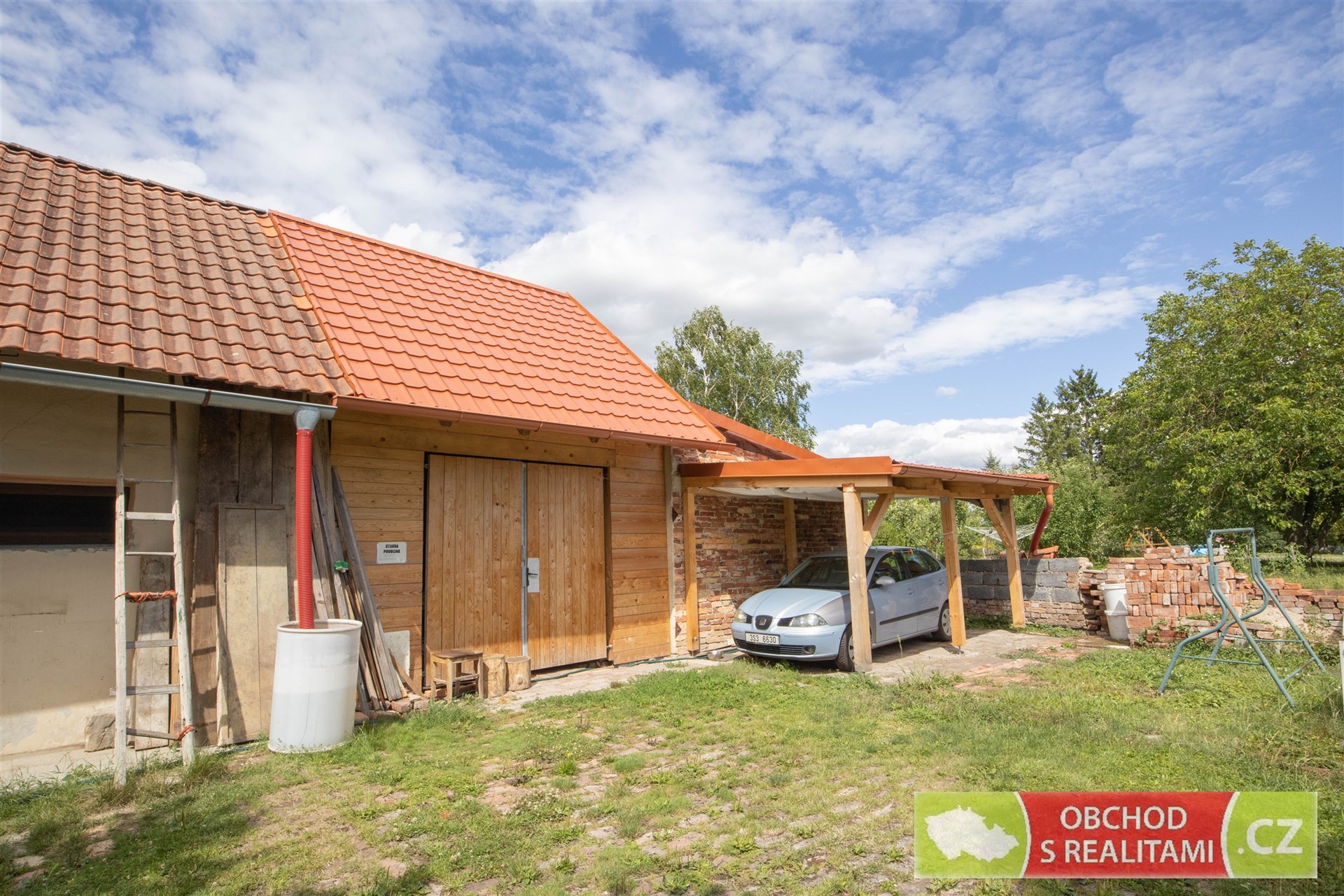 Rodinný dům nabízí dispozici 2+1, malý sklep, volnou půdu (dosud bez vestavby pokojů), stodolu s velkými vraty (například možnost parkování nebo skladování), velkou dílnu a venkovní kryté parkovací stání. Protože na úpravy domu bylo vydáno (dosud platné) stavební povolení, máme pro Vás k dispozici kompletní zaměření jednotlivých částí domu, řez domem, technickou zprávu a jiné podklady ze stavební dokumentace. Stavební povolení je platné do 8/27, a tak je dostatek času realizovat případné další úpravy domu. Maximální zastavitelnost je 40% z celkové výměry pozemku.