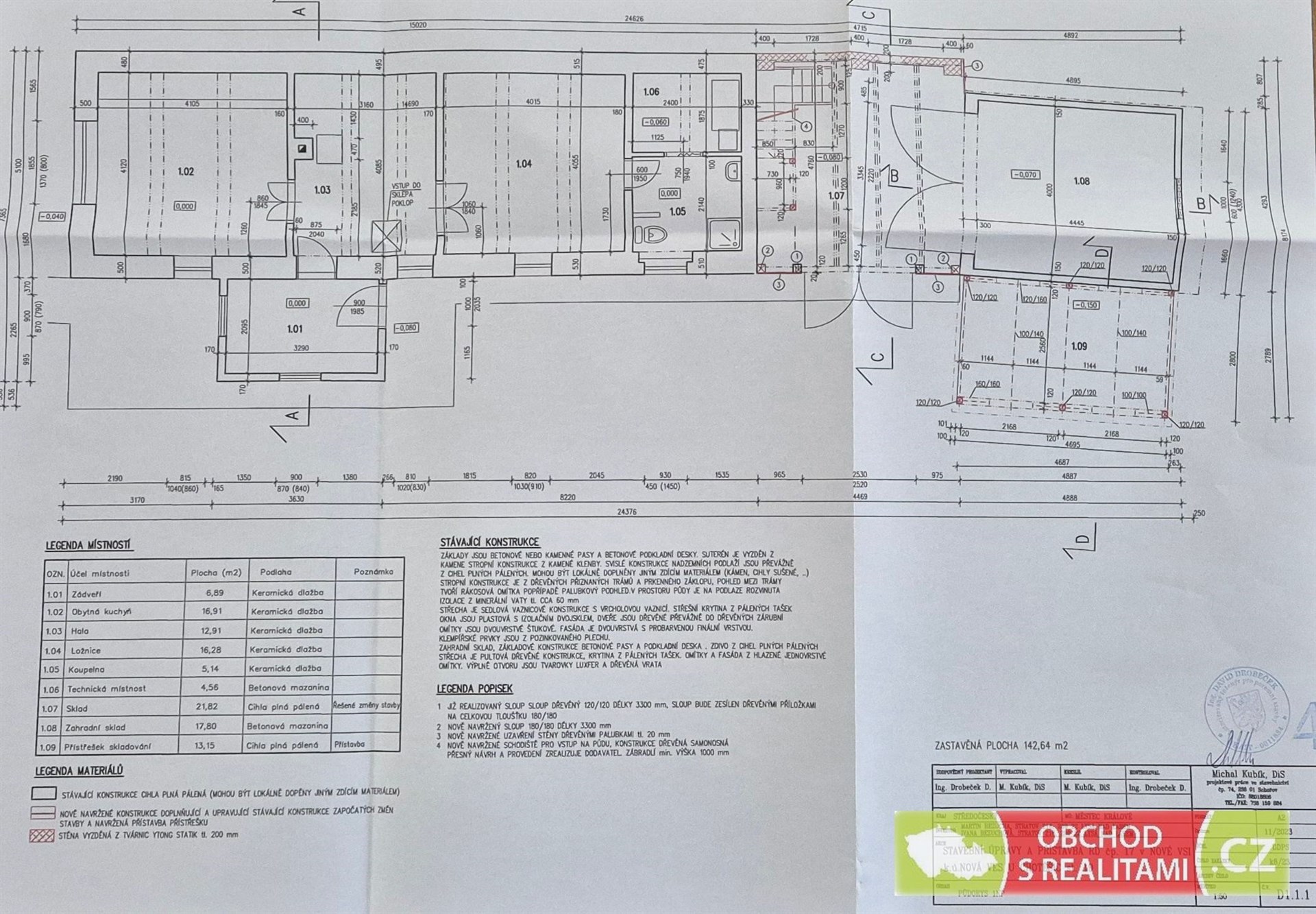 - Zastavěná plocha: 143 m²