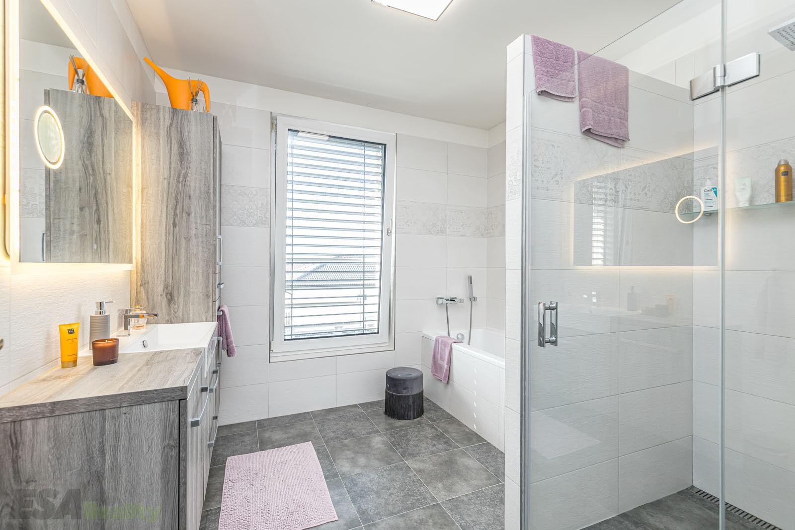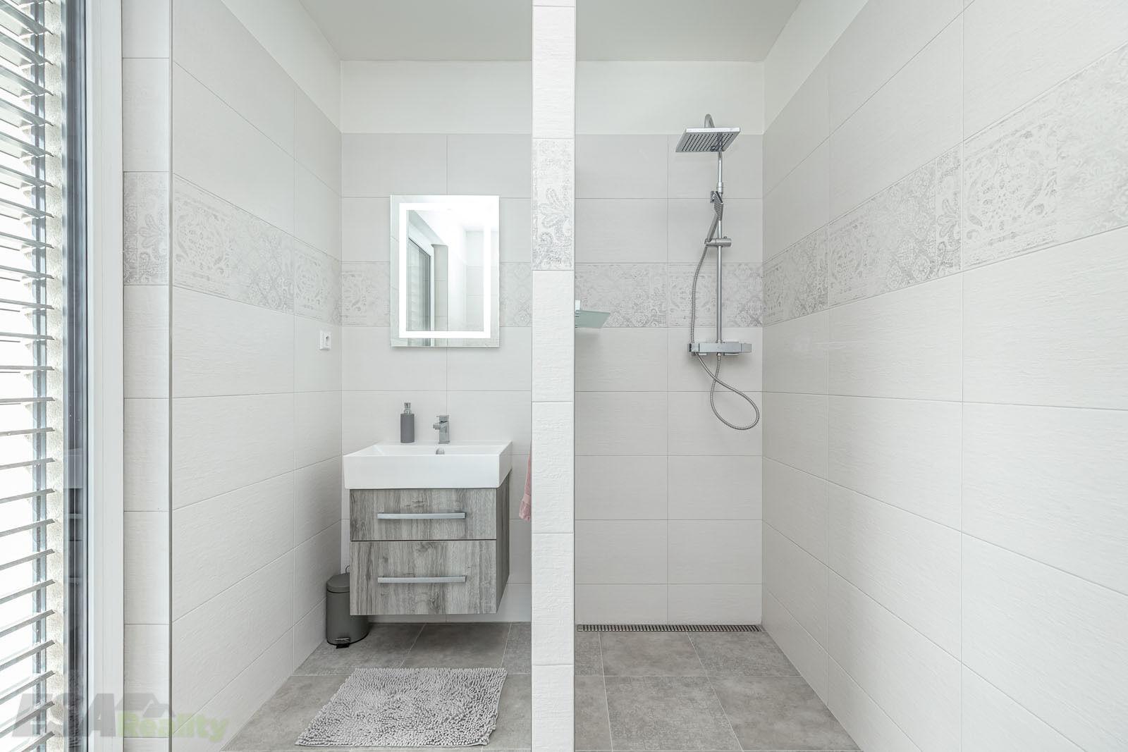 1.podlaží – prostorná vstupní chodba s vestavěnou skříní, koupelna se sprchovým koutem, samostatné WC, technická místnost, ložnice, kuchyňský kout, obývací pokoj se vstupem do zimní zahrady a garáž.