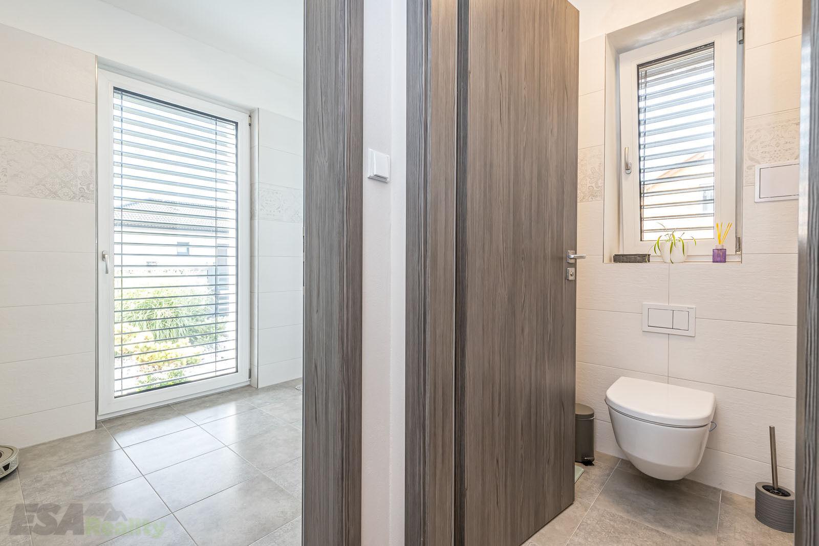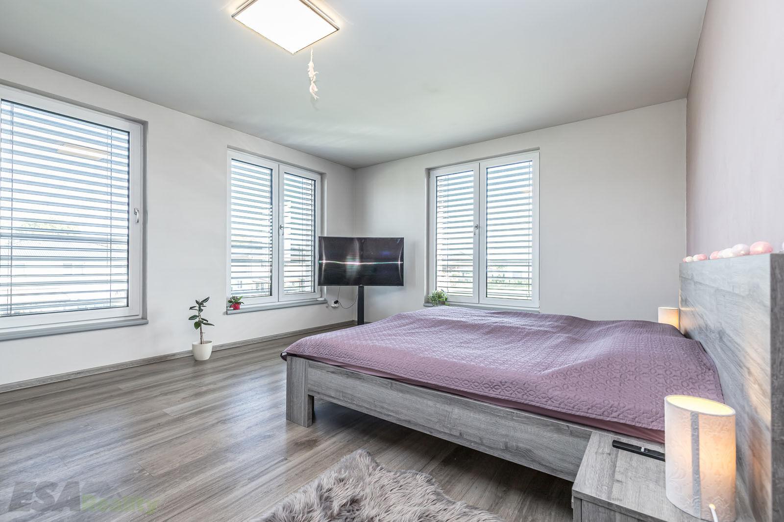 Dům je vybaven tepelným čerpadlem LG Therma V se zásobníkem vody o objemu 200 litrů a podlahovým vytápěním. Obvodové zdivo je z Ytongu o tloušťce 30 cm, doplněné o 16 cm zateplení, střešní krytinu tvoří pálené tašky. V obývacím pokoji se nachází velký hliníkový HS portál, ostatní okna jsou plastová s trojskly. Venkovní hliníkové žaluzie Climax jsou napojené na chytrou domácnost Somfy, kterou lze ovládat přes aplikaci, stejně jako vjezdová vrata a kameru u vstupu. Podlahy jsou řešeny kombinací vinylu a PVC, v koupelnách a technických místnostech je položena dlažba. V domě jsou dvě koupelny, dvě samostatné toalety a hliníkové bezpečnostní dveře.