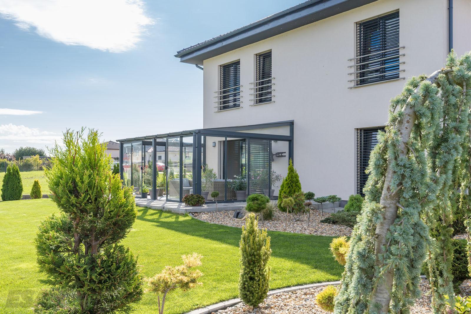 Součástí domu je prosklená zimní zahrada, která je ze všech stran otevíratelná a poskytuje příjemný prostor k odpočinku.
