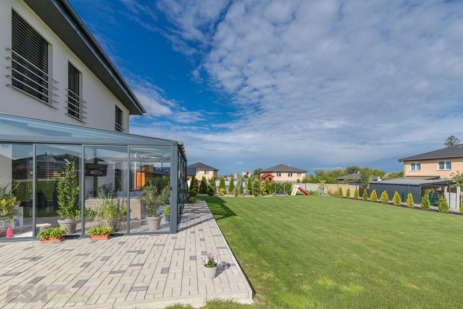 Součástí domu je prosklená zimní zahrada, která je ze všech stran otevíratelná a poskytuje příjemný prostor k odpočinku.