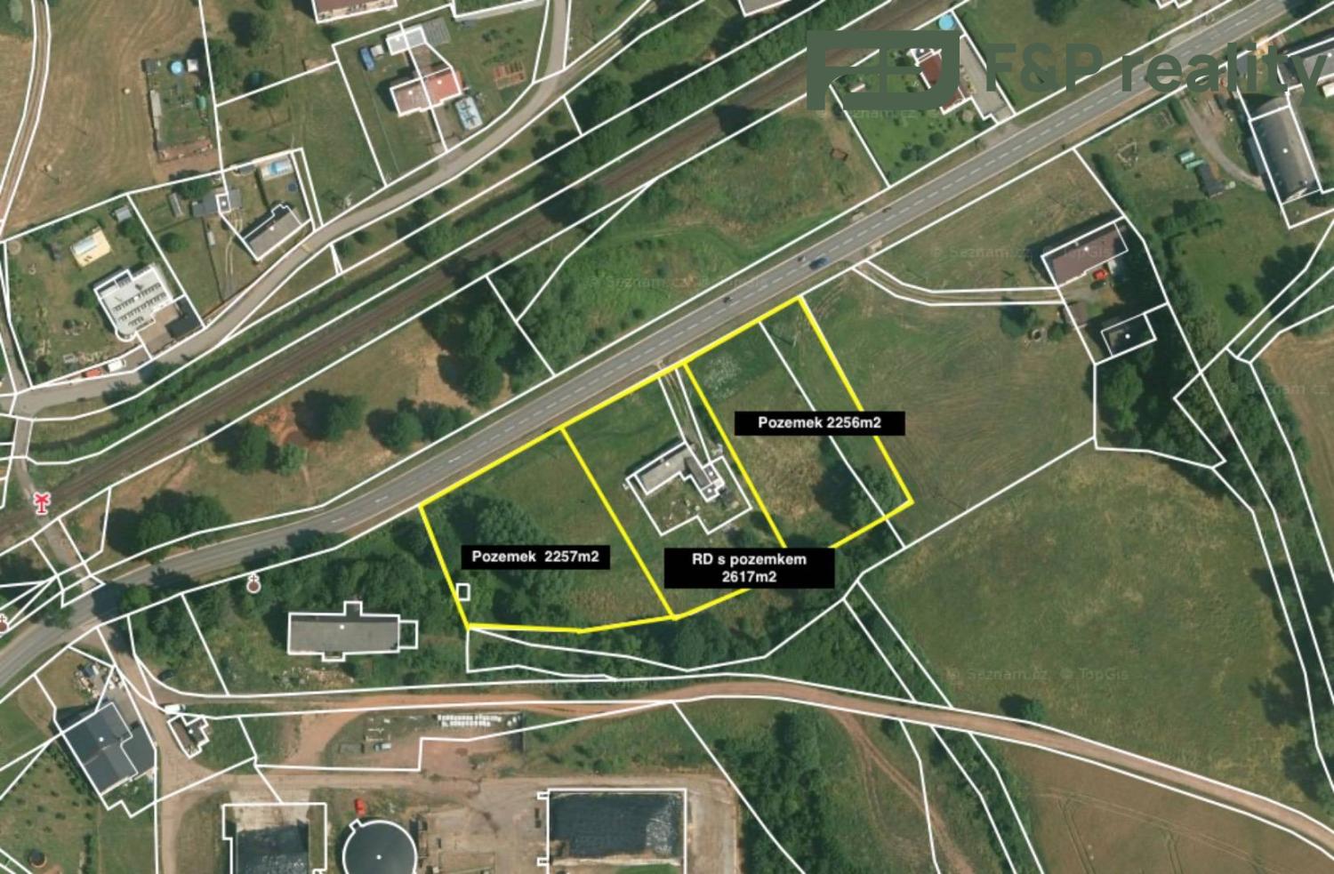 Dům se nachází na slunném a rovinatém pozemku o celkové výměře 2617m², který je dle územního plánu určen k zástavbě. Velkorysá plocha pozemku poskytuje široké možnosti využití a zajišťuje, že nebudete mít žádné přímé sousedy.