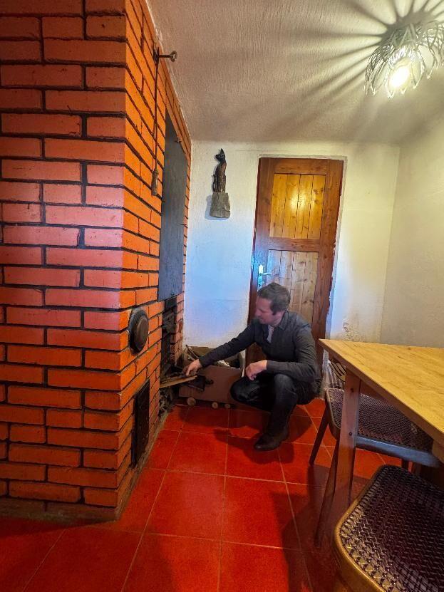 Uvnitř najdete kuchyni s cihlovými kamny a posezením, obývací pokoj a další tři pokoje pro spaní či zázemí pro děti a hosty. Nechybí koupelna se sprchou, samostatné WC ani praktické technické zázemí.