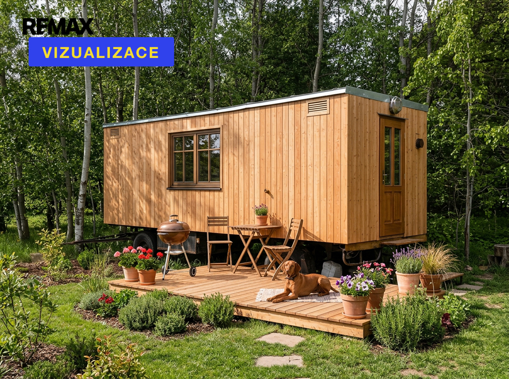 Na pozemku se dále nachází dlouhá dřevěná maringotka, kterou lze po renovaci využít pro včelařské, zahradní nebo obytné účely, a také dvě vlečky na kolech a několik hromad řeziva (fošny, latě a palivové dřevo).