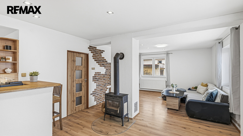 V přízemí se nachází obývací pokoj s kuchyňským koutem a krbovými kamny, která vytvářejí příjemnou atmosféru zejména v zimních měsících. Dále je zde ložnice, koupelna s vanou i sprchovým koutem, samostatné WC a technická místnost se vstupem ven. Ve druhém podlaží se nacházejí další obytné pokoje, které mohou sloužit jako dětské pokoje, pracovna nebo další ložnice. Nabízejí tak dostatek prostoru i soukromí pro každého člena domácnosti. Součástí domu je také sklep.