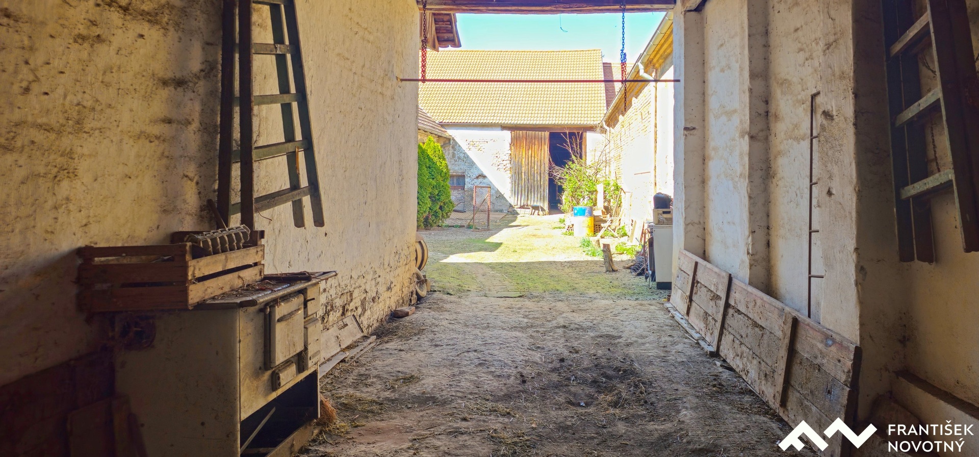 Uzavřený dvůr s průjezdem zajišťuje klid a soukromí. Součástí domu jsou hospodářské budovy s těmito místnostmi: garáž, dílna, černá kuchyně, chlívy, podzemní sklep a velká stodola s novou střechou – perfektní na parkování aut, hobby, nebo přestavbu k modernějšímu využití.