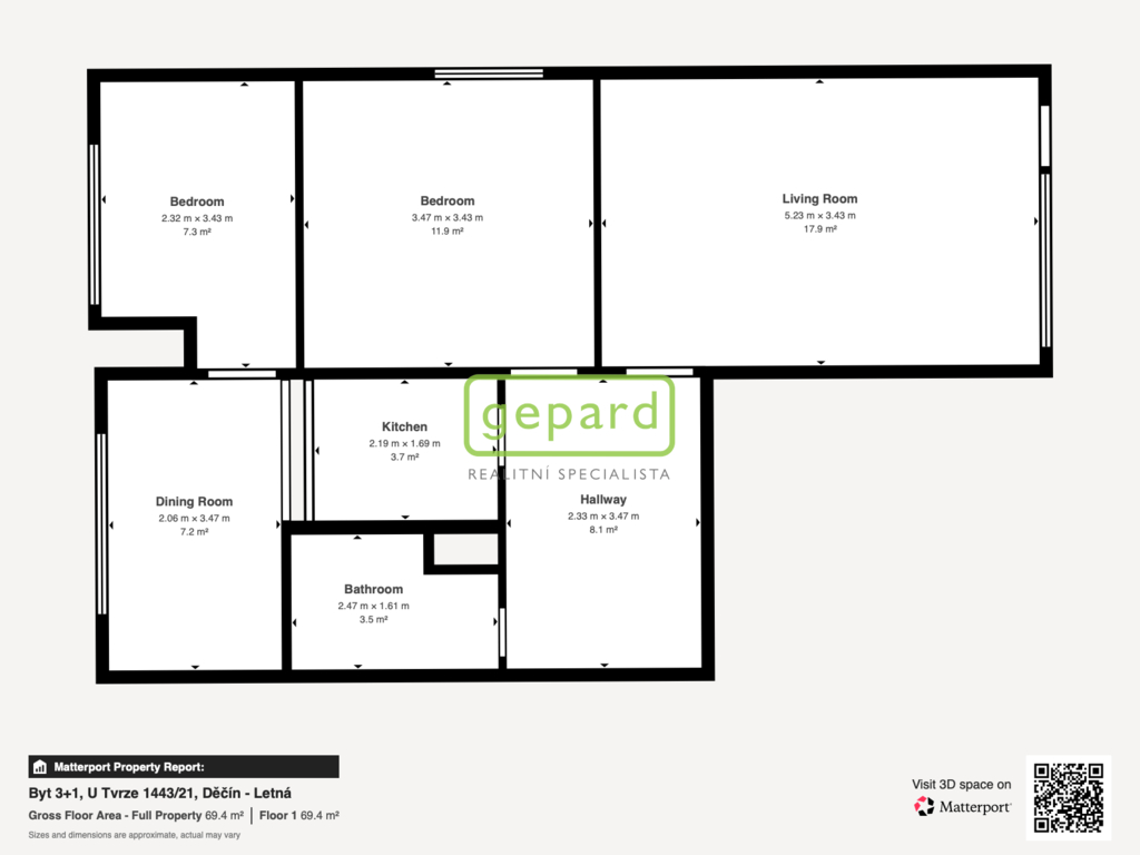 Dispozice bytu se zděným jádrem je 3+1 a s celkovou plochoun cca 68 m2 nabízí vskutku prostorné bydlení. Nachází se ve 4. NP patře udržovaného panelového domu s výtahem z celkových 8. NP ve velice vyhledávané lokalitě okresního města Děčín - Letná. Konkrétně v ulici U Tvrze 1443/21.