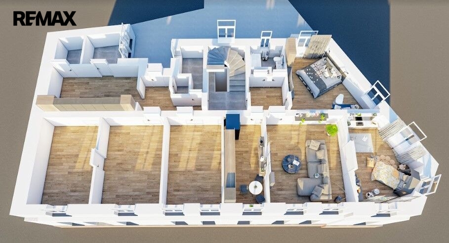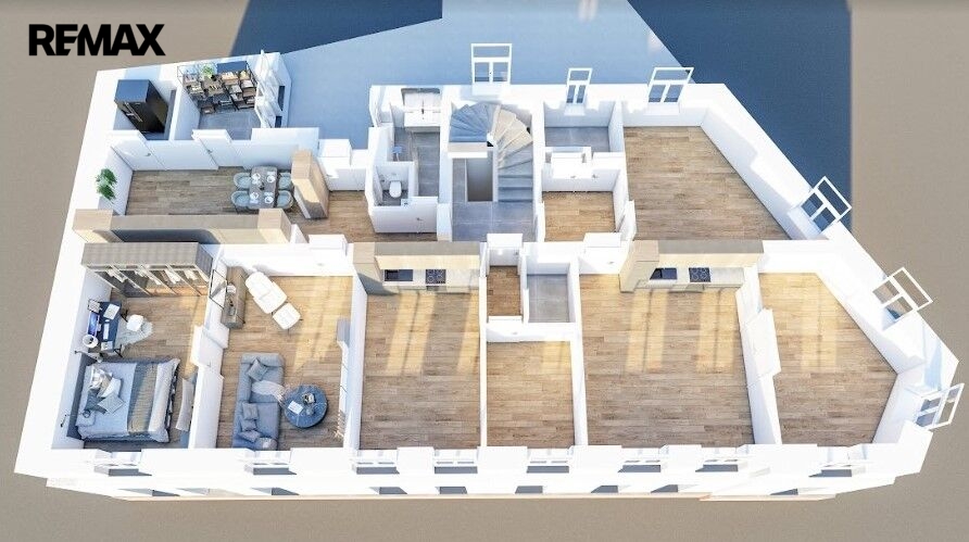 • Půdní prostor – nabízí možnost vybudování samostatných jednotek či velkorysých mezonetových bytů.