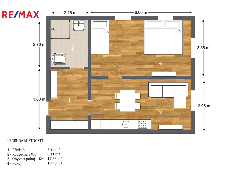 | Dispozice/podlahová plocha: | 2+kk/52 m² |