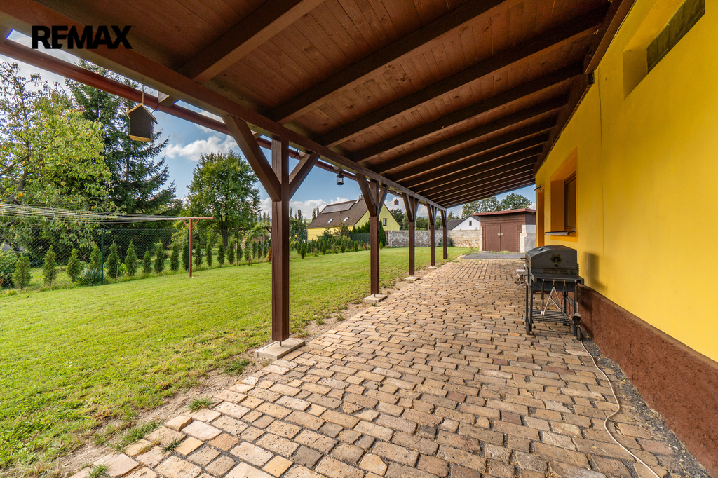Velkou předností této nemovitosti je také rozlehlá oplocená zahrada, která nabízí příjemné posezení na terase, prostor pro grilování, bezpečné parkování několika vozů a další možnosti využití. K dispozici je také sklep a samostatná bouda vhodná na kola nebo nářadí.