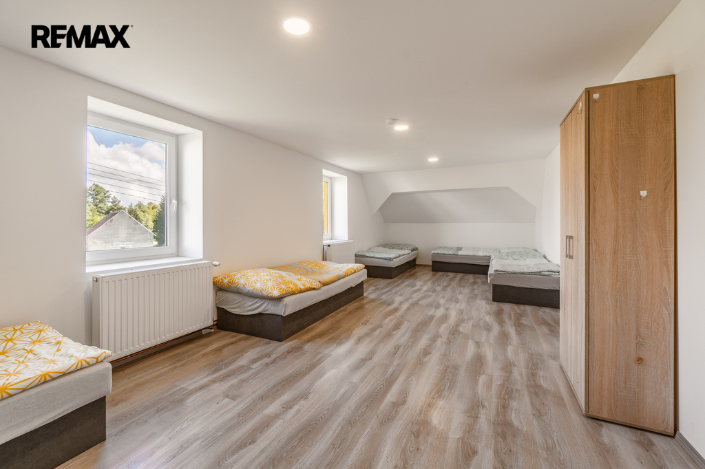 Flexibilní dispozice umožňuje penzion provozovat pro krátkodobé i dlouhodobé pobyty, firemní školení, sociální bydlení s možností dotací nebo jej převést na apartmánový dům, takže obchodní model lze snadno přizpůsobit aktuální poptávce.