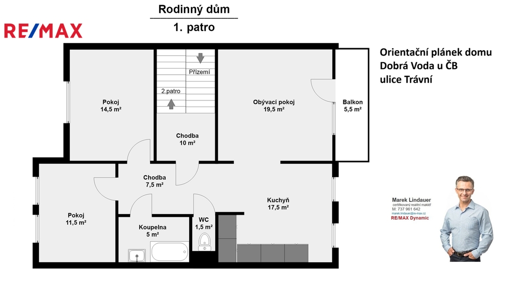 1.NP je možno užívat jako samostatný byt 3+1 s lodžií o výměře 82,5 m2.