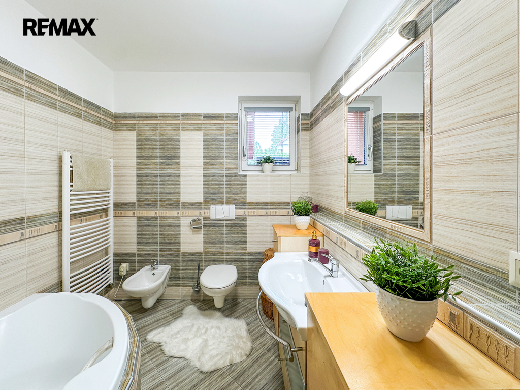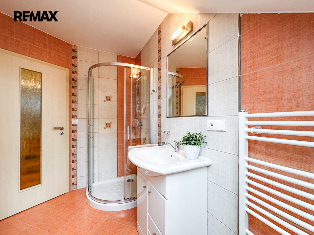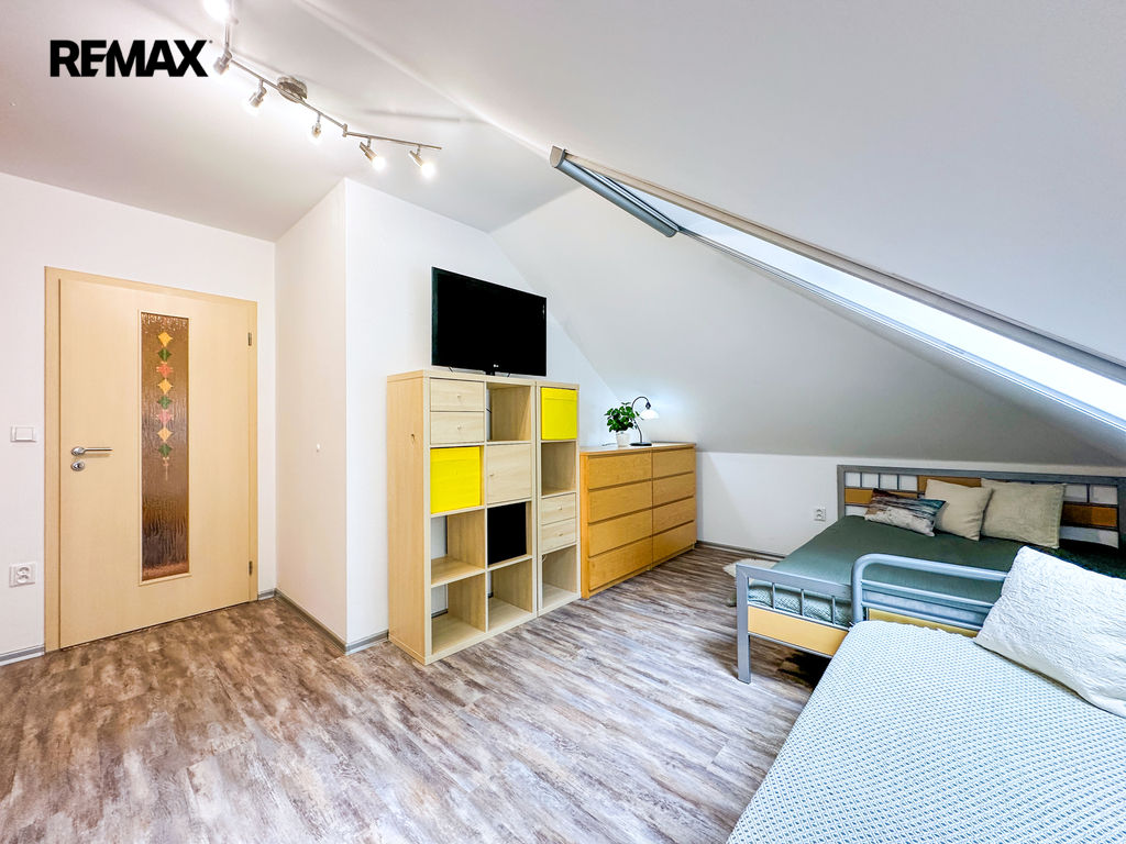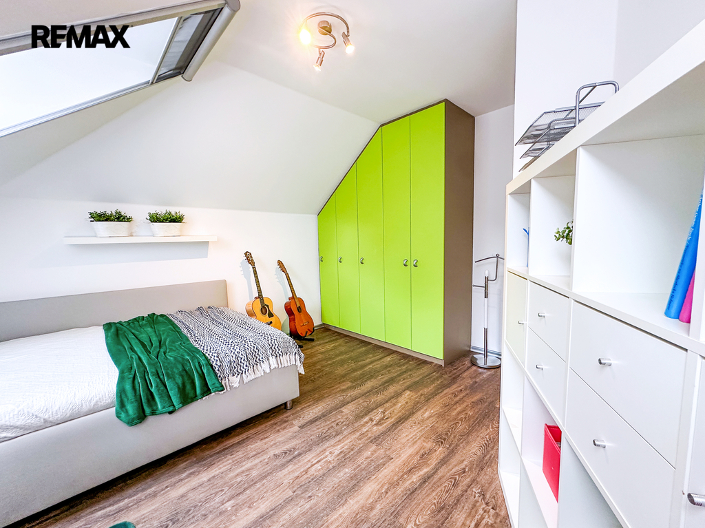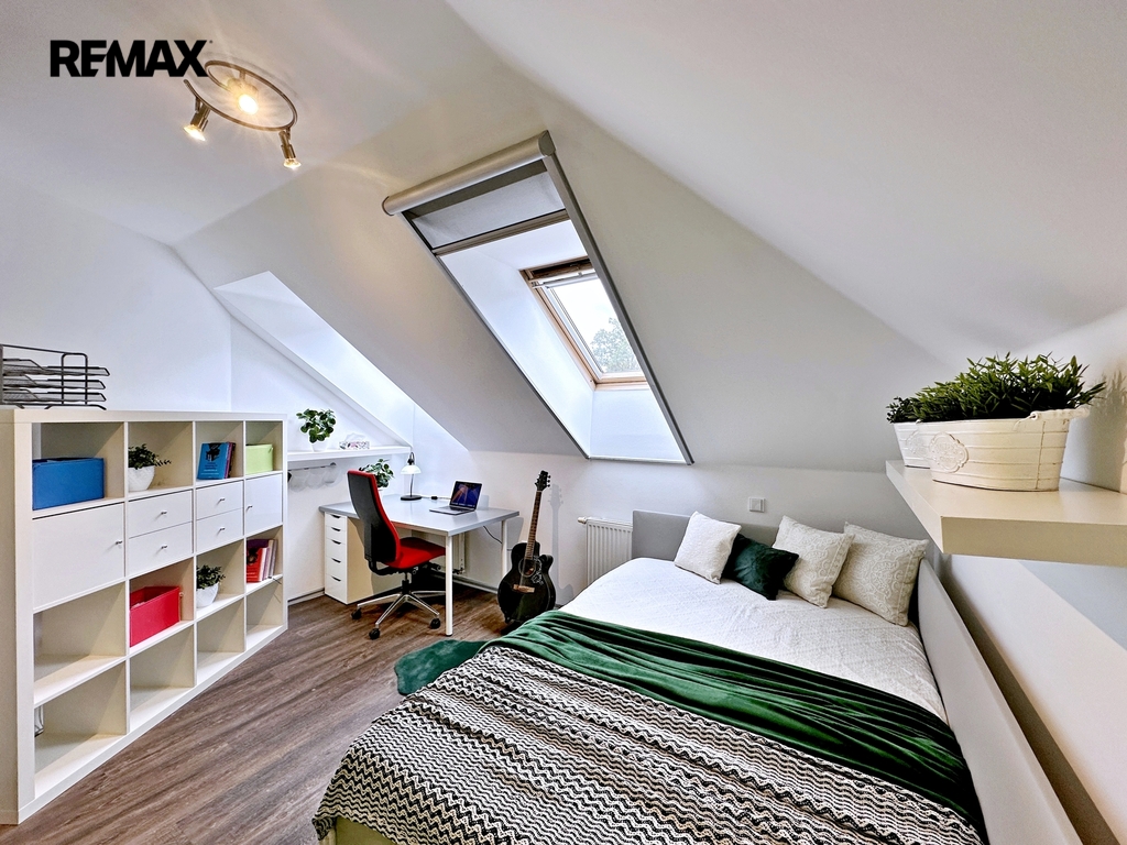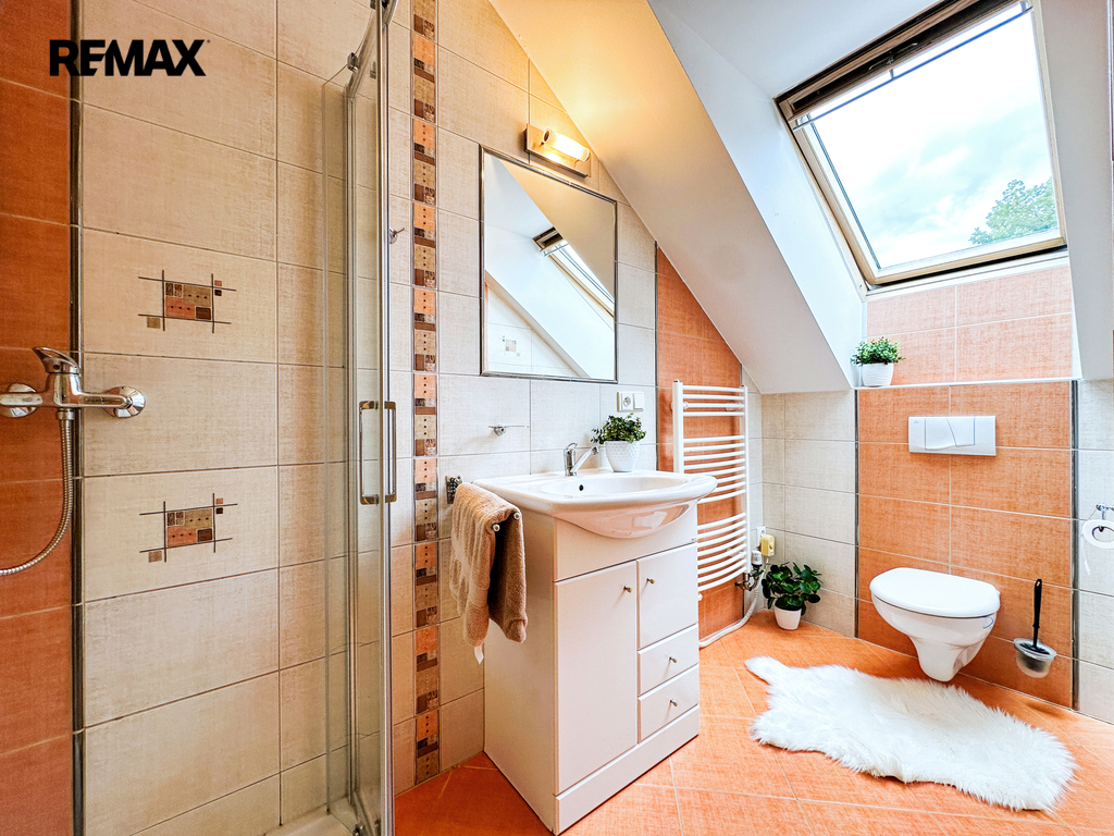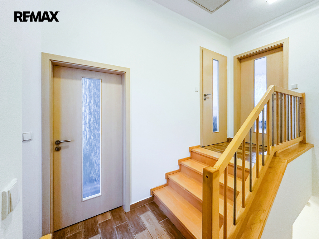 Patro: Horní podlaží je rozděleno na tři samostatné neprůchozí pokoje – ideální jako ložnice a dva dětské pokoje. Pohodlí zvyšuje druhá koupelna s WC.