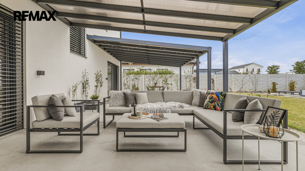 Dům je vybaven moderními technologiemi, jako je tepelné čerpadlo, podlahové vytápění v celém domě, chytrá domácnost pro ovládání venkovních žaluzií, garáže a vjezdových vrat přes telefon, kamerový systém a zabezpečovací systém Jablotron. Samozřejmostí jsou velkoformátová okna, vestavné skříně a kvalitní materiály včetně sanity Villeroy & Boch. Energetická náročnost budovy spadá do velmi úsporné třídy B. Dům je připraven k okamžitému nastěhování.