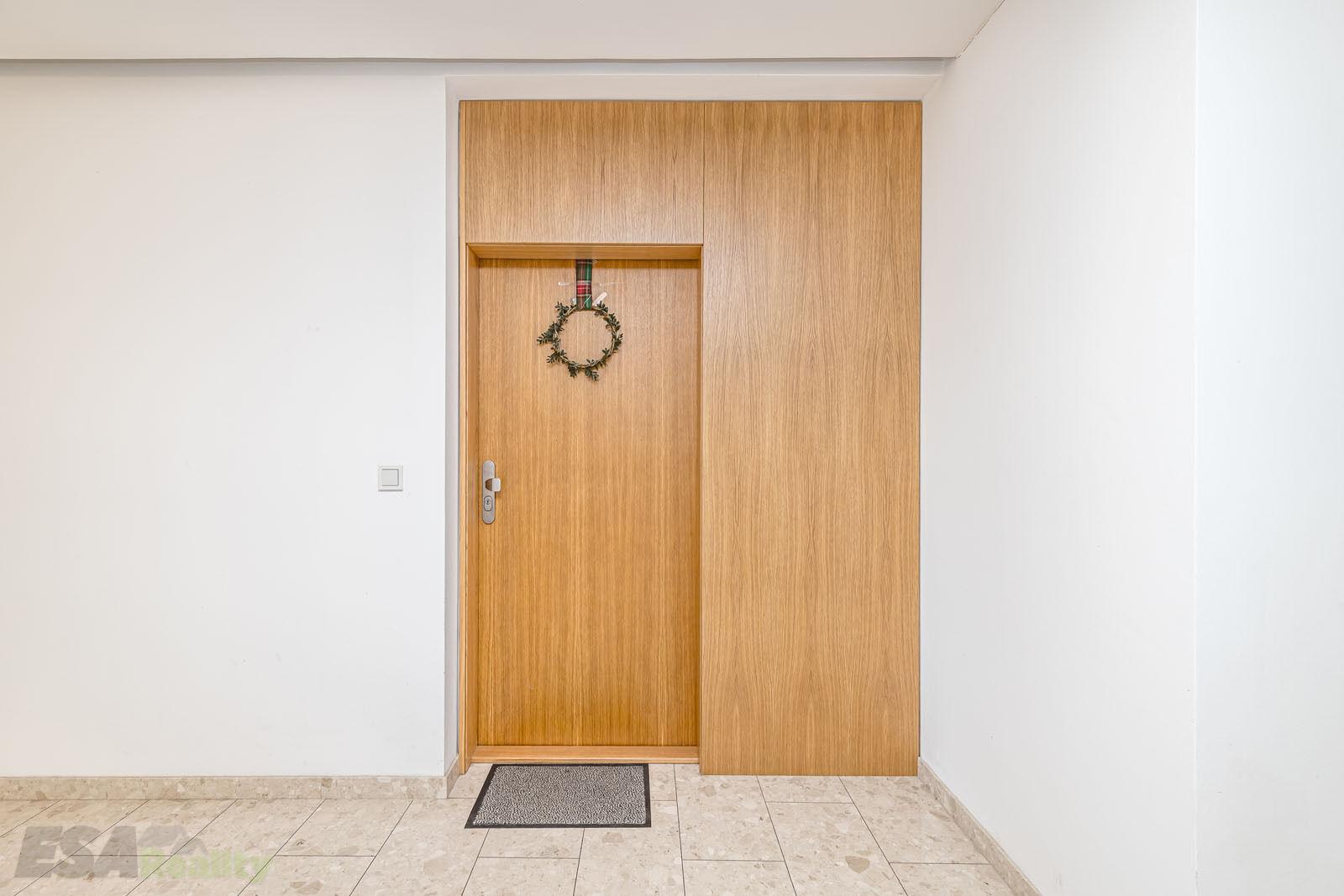 Standard bytu: velkoformátová hliníková posuvná okna Reynaers, podlahové vytápění Rehau a radiátory, kondenzační kotel Viessmann, předokenní elektrické žaluzie, sluneční markýza na terase, zabezpečovací systém, bezpečnostní dveře Next.