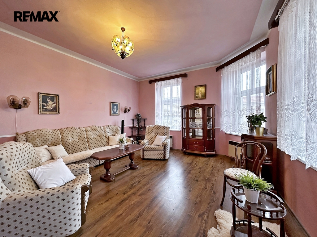 V prvním patře se nachází zrekonstruovaná bytová jednotka o dispozici 3+1. Světlá kuchyně s moderní linkou a spotřebiči (stáří 1 rok) navazuje na prostorný obývací pokoj. Dvě ložnice a koupelna s rohovou vanou a WC doplňují komfortní bydlení v klidném prostředí centra městyse.