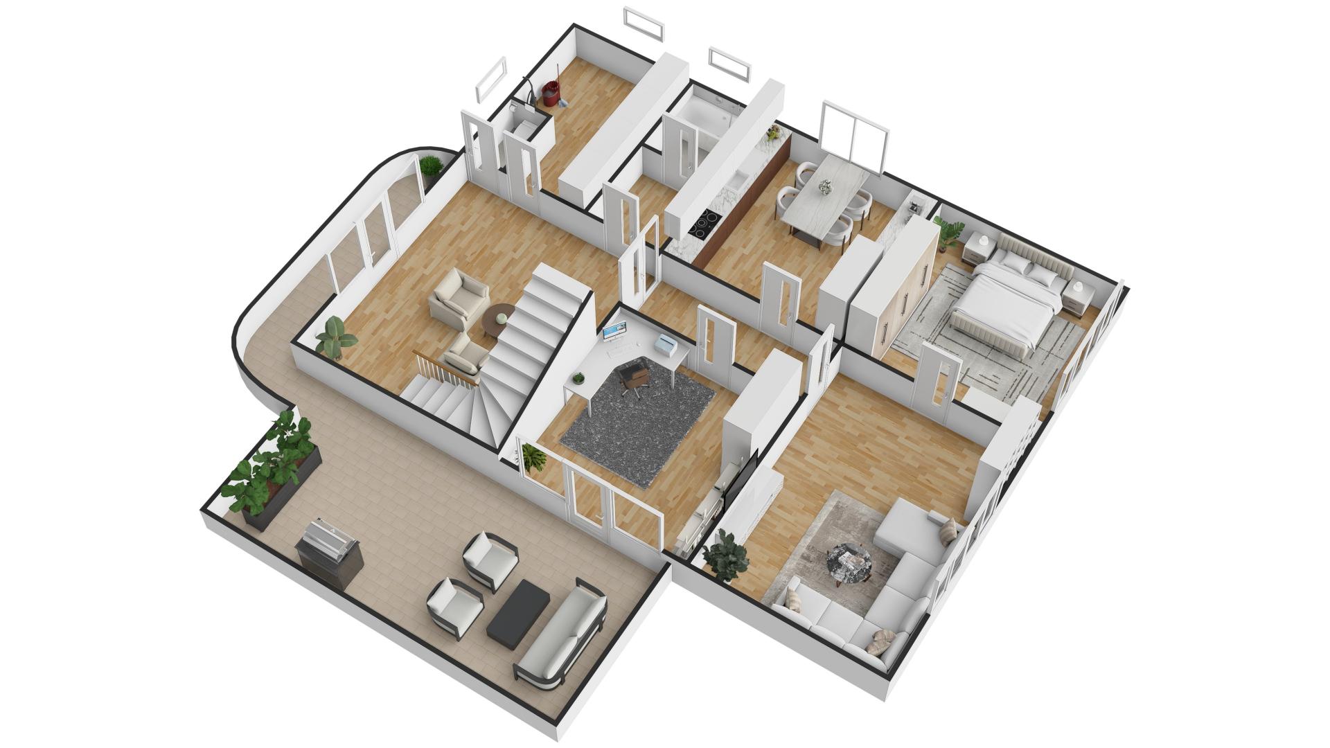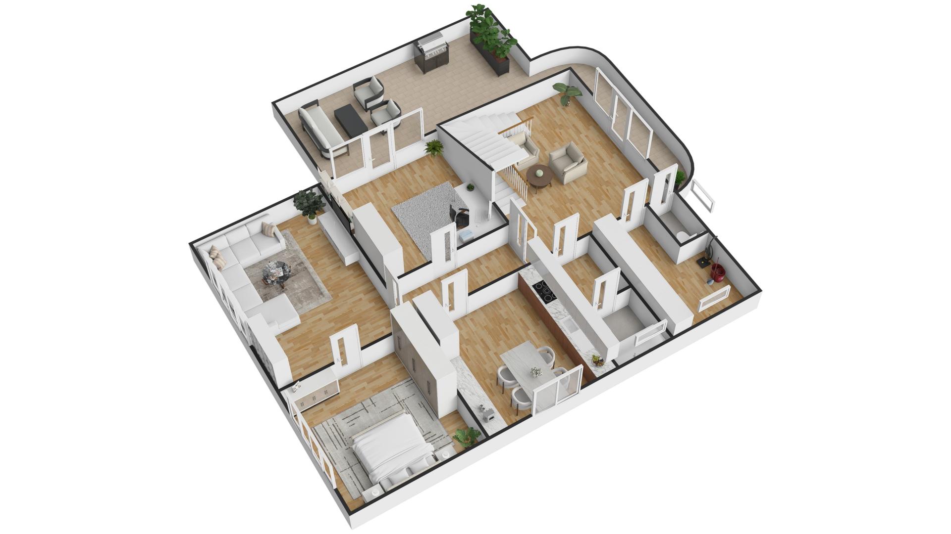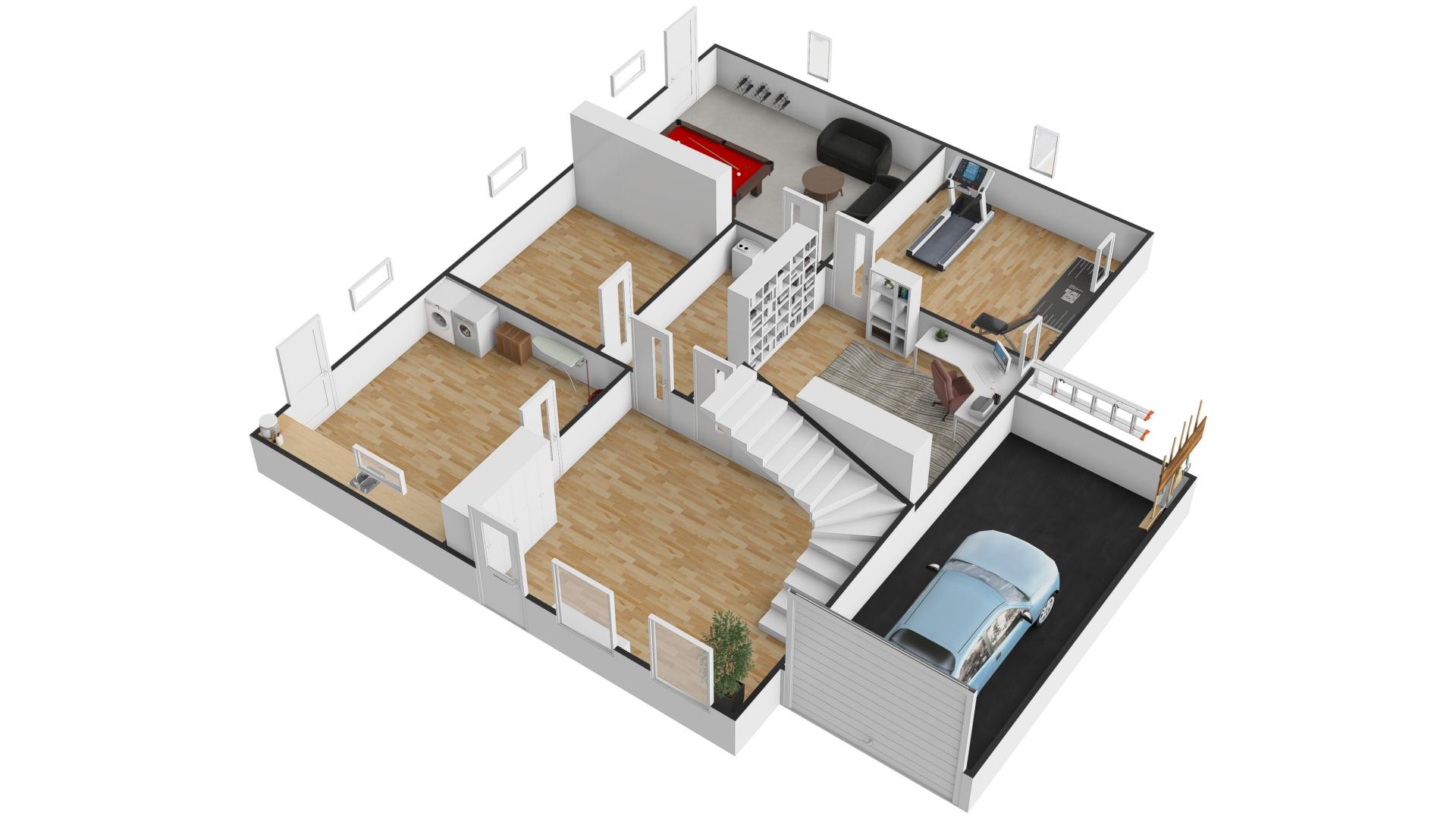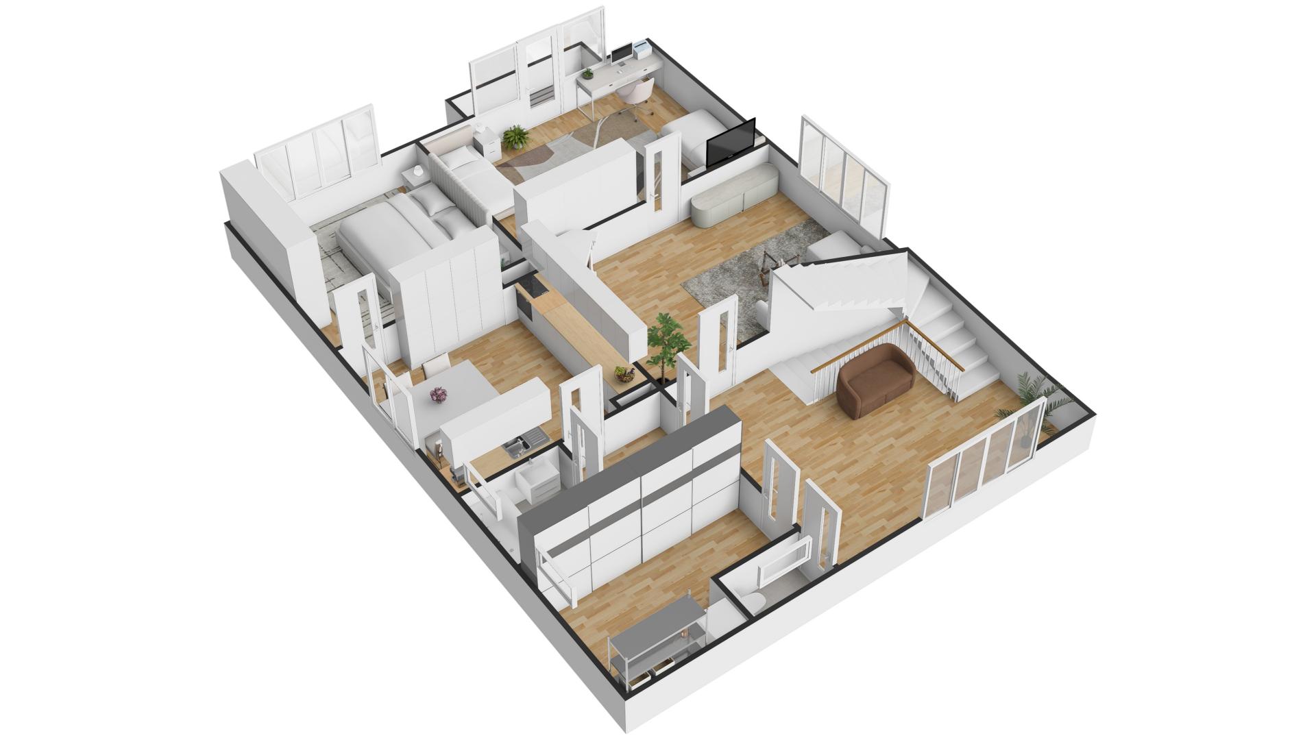 Dispozice domu o 3 nadzemních podlažích s podkrovím: