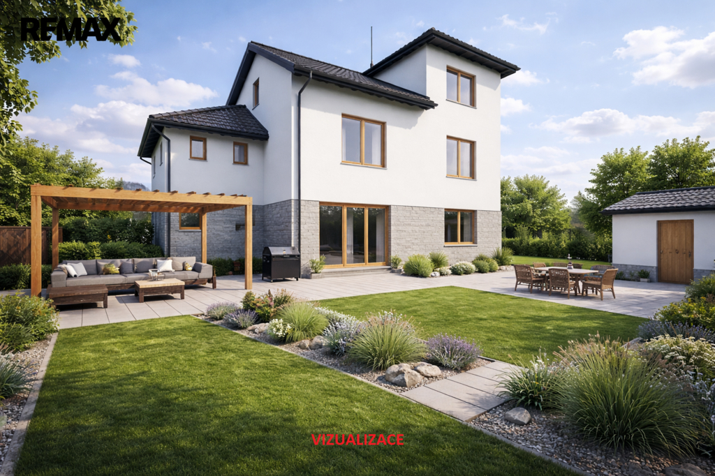 Na zahradě garáž 20 m², hospodářská budova s podlahovou plochou 28 m², se sedlovou střechou a dalšími úložnými prostory. A také kopaná studna.