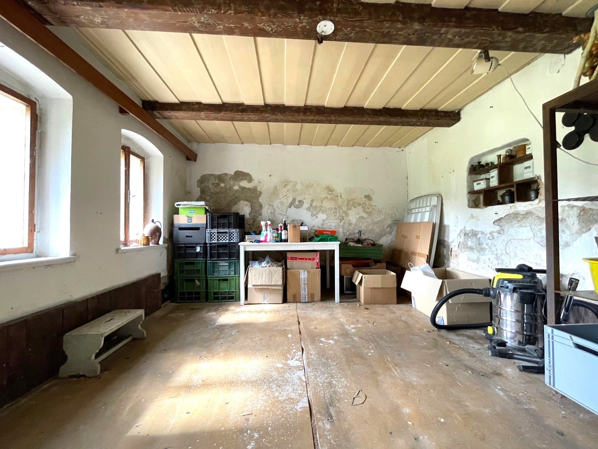 Dispozice: 1. NP - světnice, kuchyň, chodba, koupelna, dílna, chlév a suchý záchod. 2. NP - 2 pokoje a chodba. Nemovitost disponuje malým klenutým sklepem, půdou a navazující celodřevěnou stodolou. Objekt je napojen na obecní vodovod, elektřinu 230/400 V a je zde přípojka plynu.