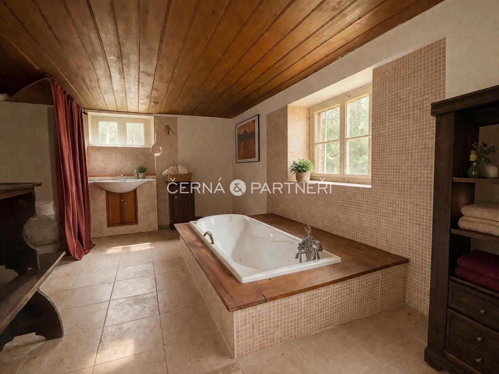 Chata disponuje: 5 pokoji, zimní zahradou, kamny s rozvodem tepla po celém domě, možností celoročního bydlení i víkendových pobytů