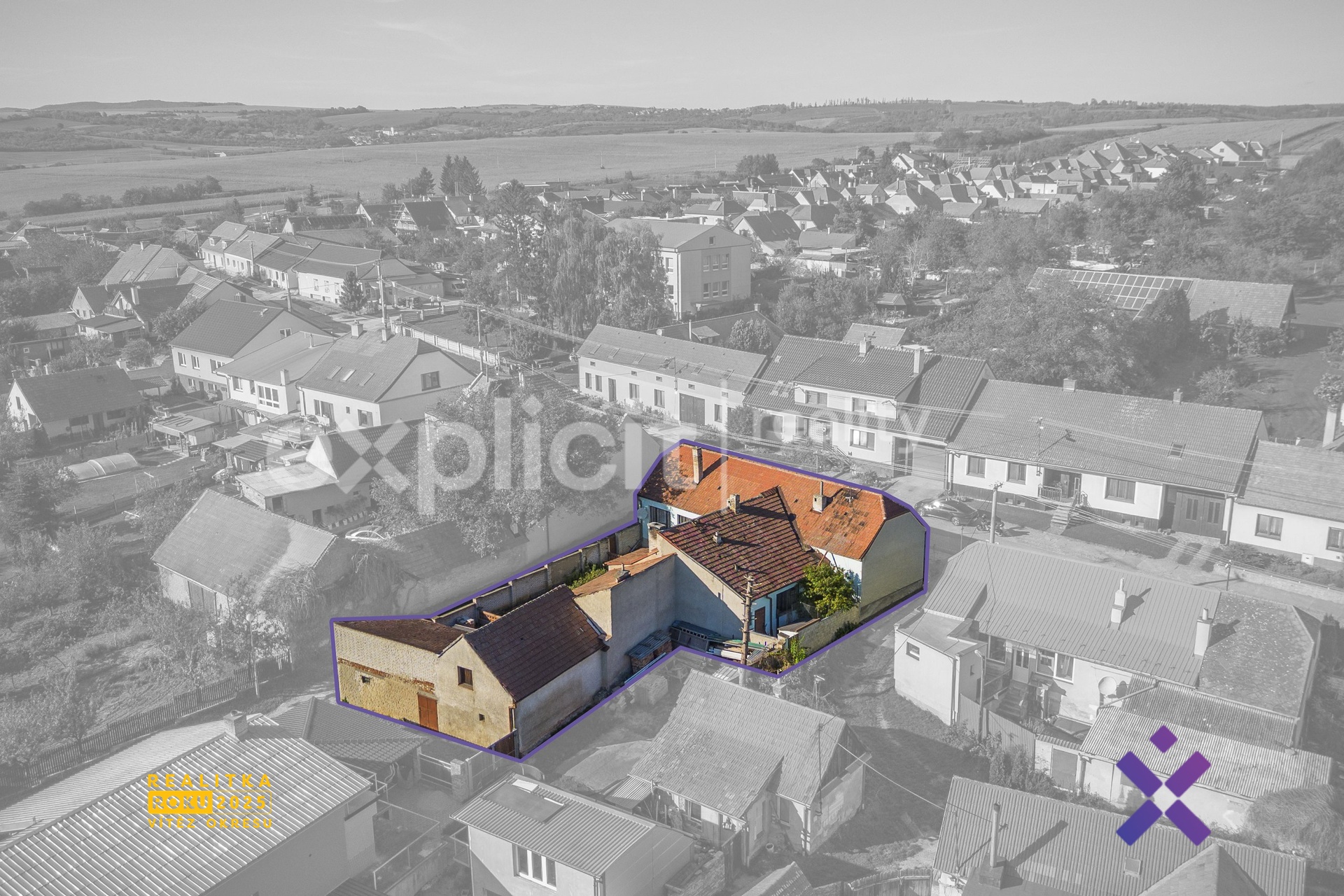 Vizualizace a vyobrazení nemovitosti a pozemku jsou pouze ilustrativní. Závazné údaje o hranicích pozemku jsou uvedeny v katastrální mapě.