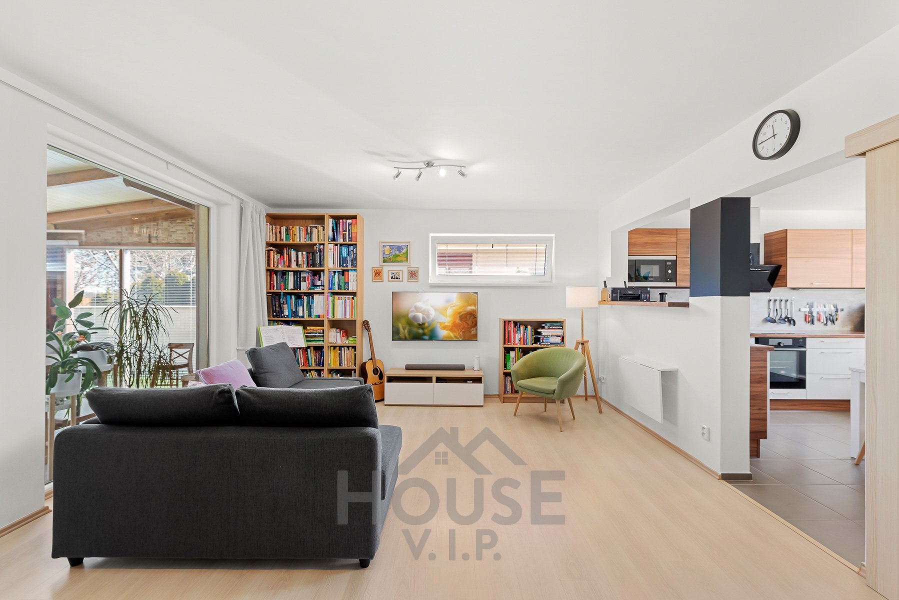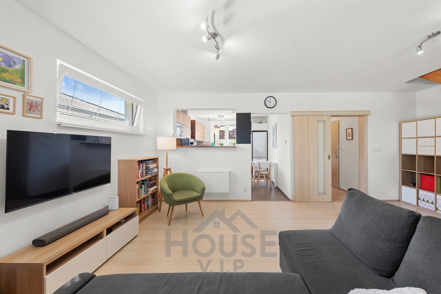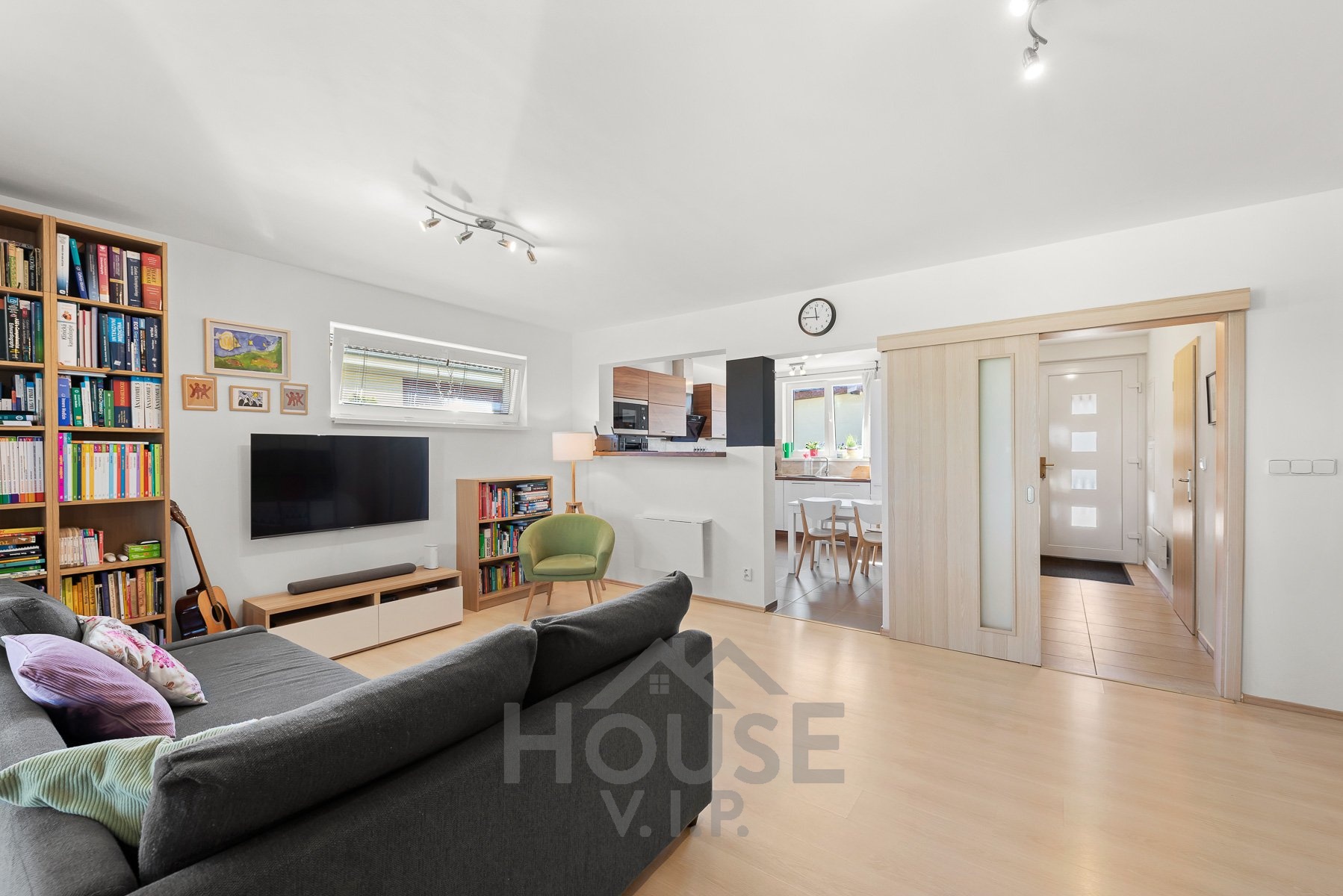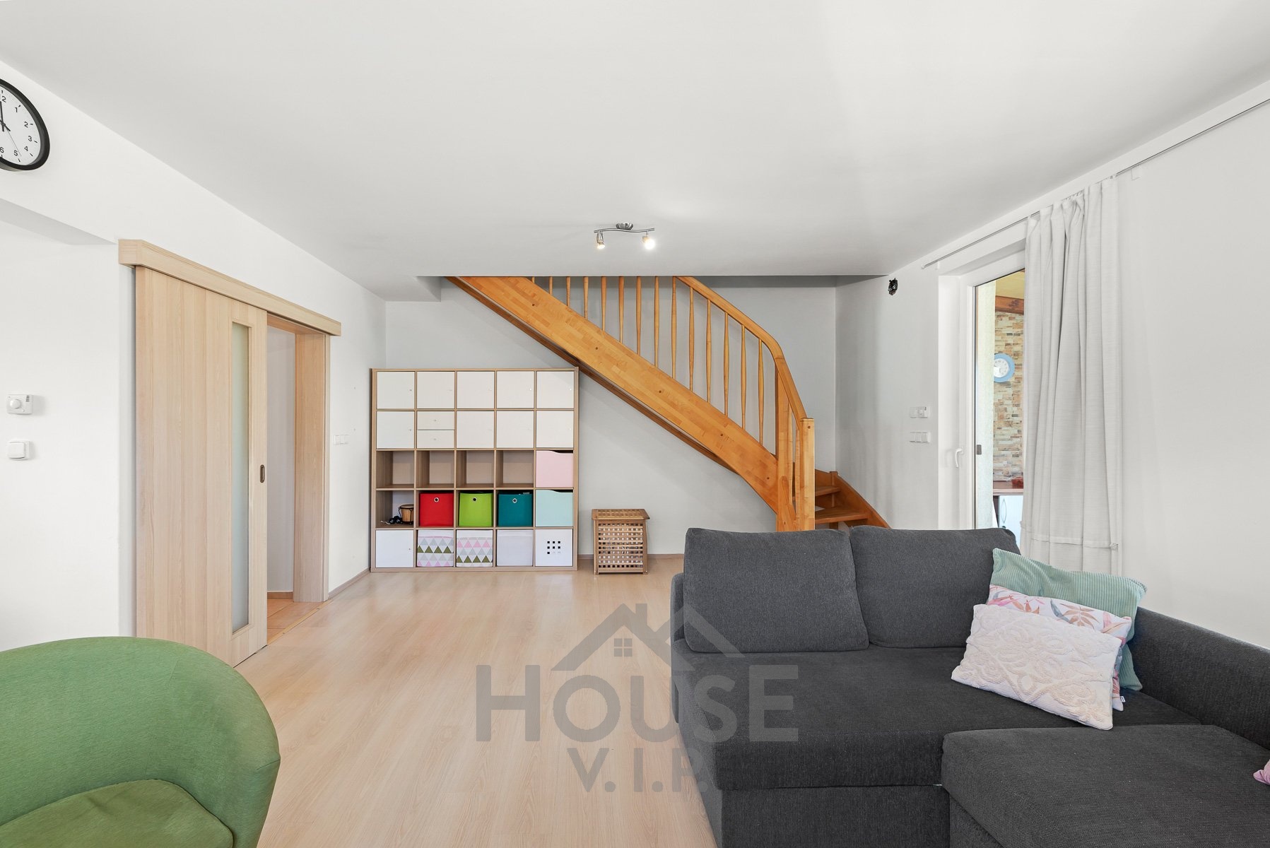 V přízemí se nachází obytná část s podlahovým vytápěním, které zajišťuje příjemné teplo a pohodlí během celého roku. Součástí domu je také zimní zahrada (17 m2) s přímým vstupem na zahradu, která poskytuje ideální místo pro relaxaci i posezení s rodinou či přáteli.