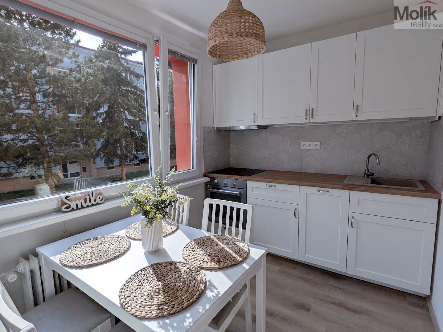 Byt se nachází ve zvýšeném přízemí (1. nadzemním podlaží) domu bez výtahu. Tento měsíc byla dokončena kompletní rekonstrukce, která zahrnovala výměnu rozvodů elektřiny a odpadů, renovaci zdí, stropů i podlahových krytin (vinyl), instalaci kuchyňské linky na míru (se zabudovanou myčkou, indukční varnou deskou ,horkovzdušnou troubou a výsuvnou digestoří), nové dveře včetně obložek a rekonstrukci koupelny a WC. Byt je velmi krásný a světlý, nabízí hezký výhled na okolní zeleň. Díky své poloze poskytuje příjemnou a klidnou atmosféru. V docházkové vzdálenosti 5-10 minut se nachází Zámecká zahrada, sportovní areál Bažantnice, rybník Leontýna i centrum města.