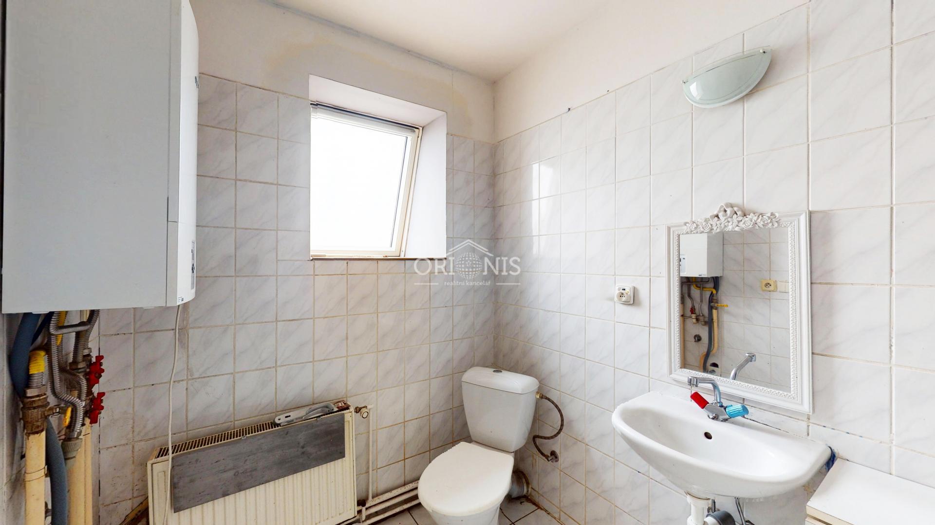 Vytápění je řešeno vlastním plynovým kotlem, zatímco ohřev vody je společný pro celý dům.