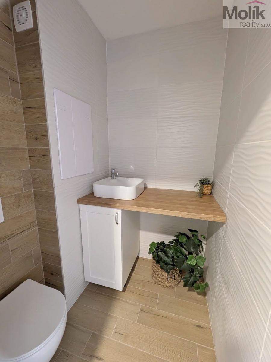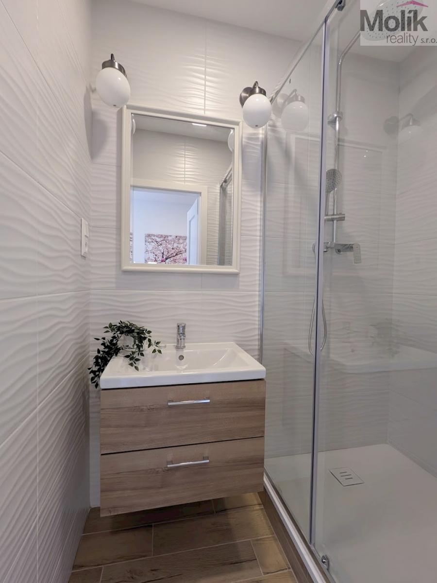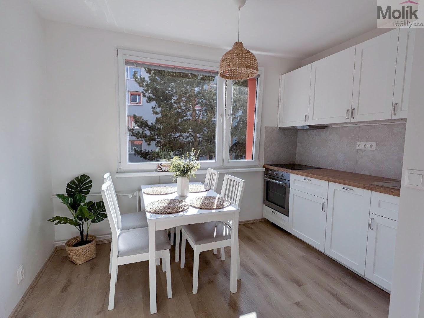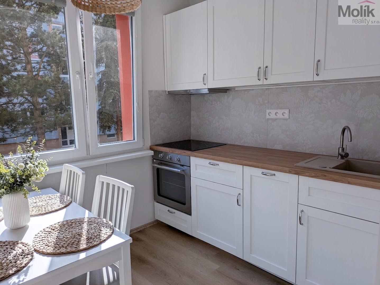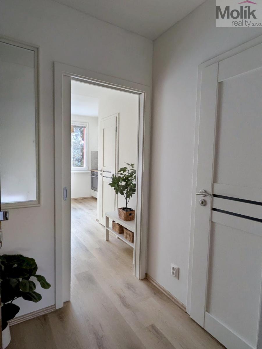 Byt se nachází ve zvýšeném přízemí (1. nadzemním podlaží) domu bez výtahu. Tento měsíc byla dokončena kompletní rekonstrukce, která zahrnovala výměnu rozvodů elektřiny a odpadů, renovaci zdí, stropů i podlahových krytin (vinyl), instalaci kuchyňské linky na míru (se zabudovanou myčkou, indukční varnou deskou ,horkovzdušnou troubou a výsuvnou digestoří), nové dveře včetně obložek a rekonstrukci koupelny a WC. Byt je velmi krásný a světlý, nabízí hezký výhled na okolní zeleň. Díky své poloze poskytuje příjemnou a klidnou atmosféru. V docházkové vzdálenosti 5-10 minut se nachází Zámecká zahrada, sportovní areál Bažantnice, rybník Leontýna i centrum města.
