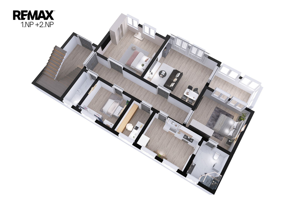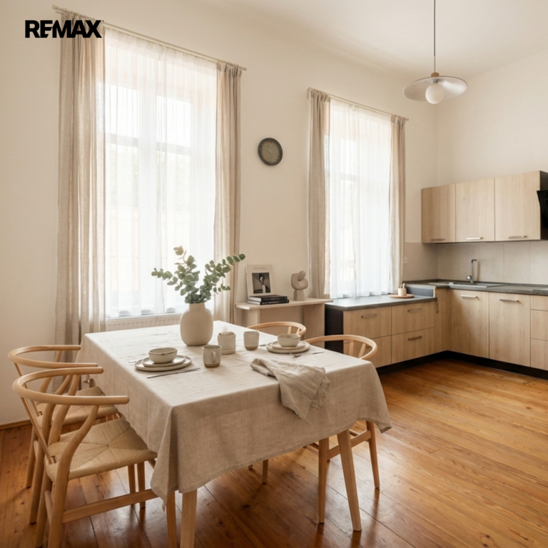 Dům je plně podsklepen a v obou nadzemních podlažích nabízí samostatné nadstandardní bytové jednotky 4+1. Naprosto ojedinělé jsou pak i zachovalé původní malby s lidovými motivy v některých místnostech. Součástí nabídky je i stále kvalitní nadčasový nábytek z doby 1. republiky.