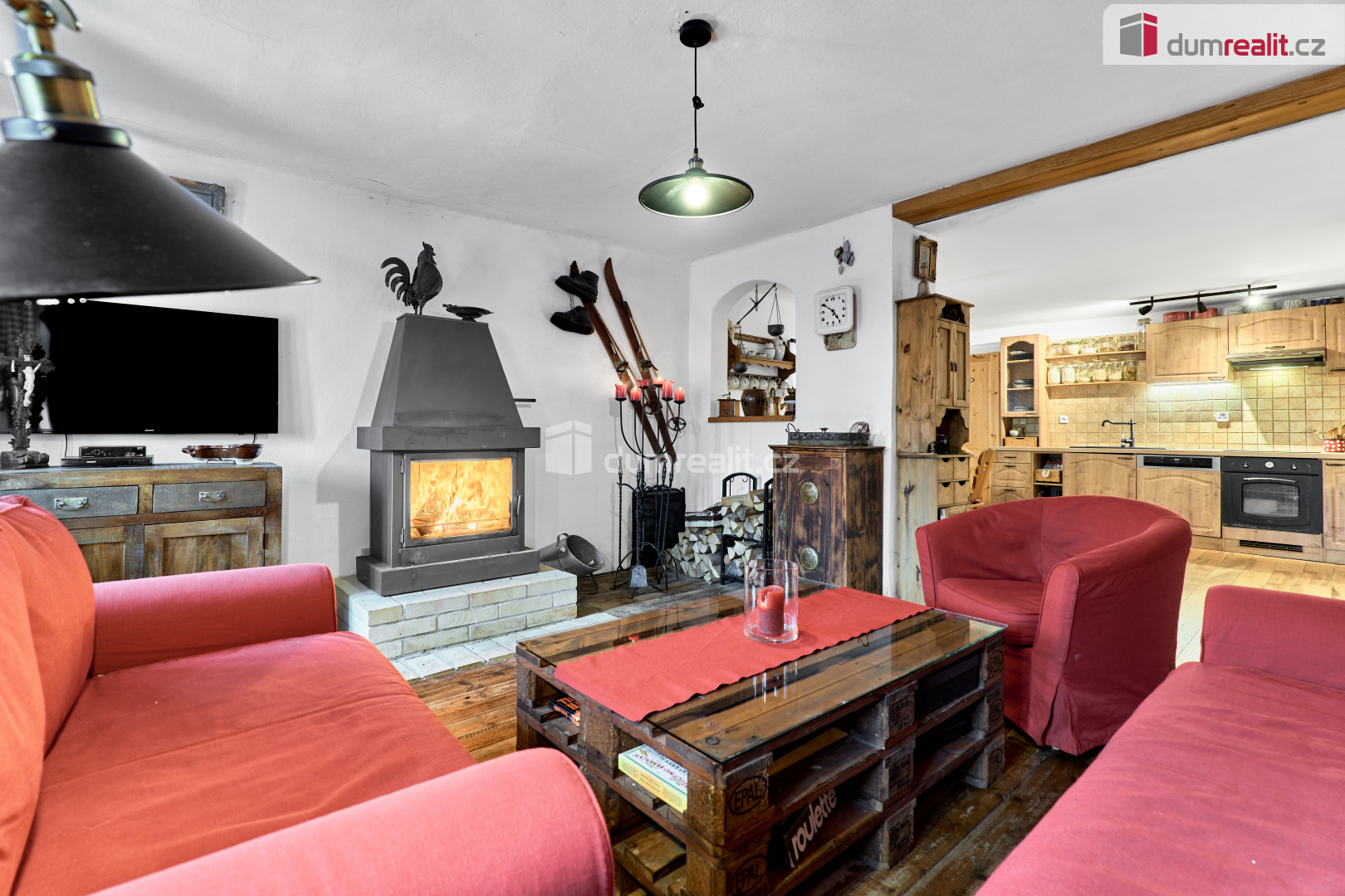 • elektrokotel s dálkovým ovládáním + krb