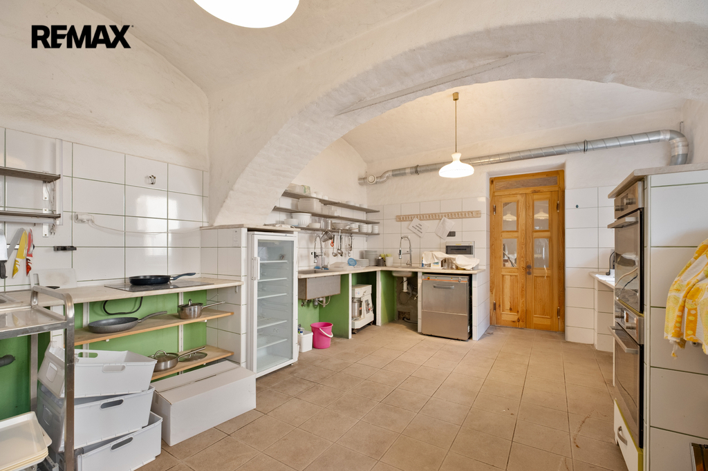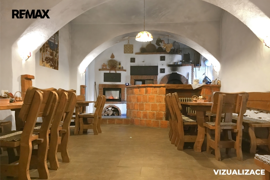Přízemí hlavní budovy však již rekonstrukcí prošlo – v roce 2016 zde byla vybudována a zkolaudována rodinná restaurace. V současné době je provoz uzavřen a prostory jsou zakonzervovány, avšak připraveny k případnému obnovení. Součástí restaurace je prostorná kuchyně s kompletním gastronomickým zázemím. Vytápění zajišťuje teplovodní krbová vložka, pec a kachlová kamna, případně je možné využít také elektrické vytápění. Prostory jsou vybaveny rekuperační jednotkou, dvěma funkčními komíny a součástí prodeje je i veškeré vybavení restaurace.