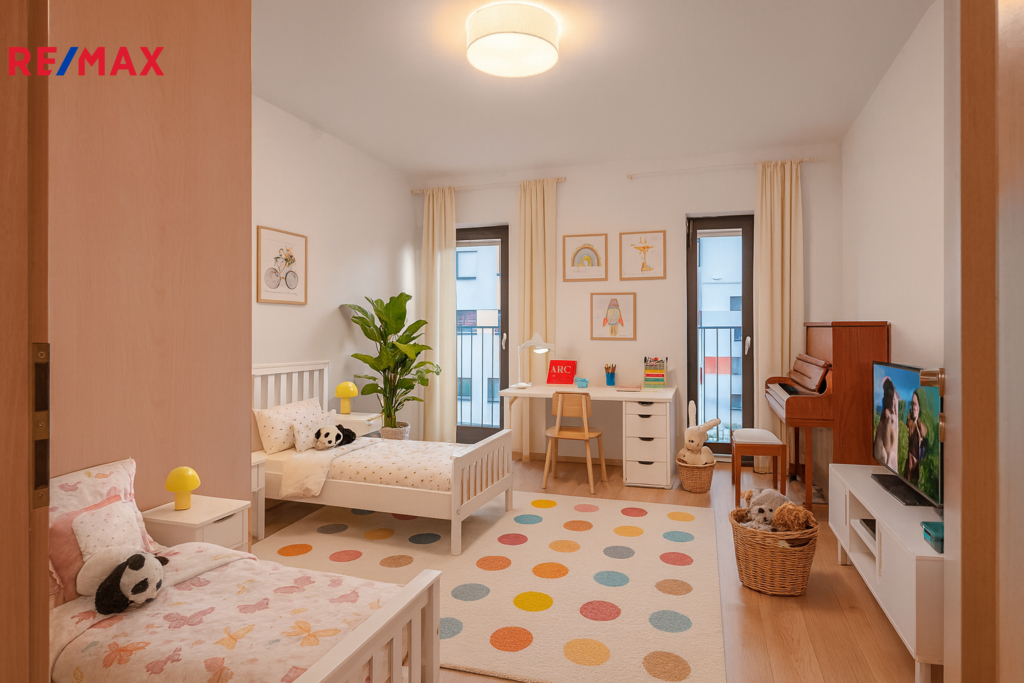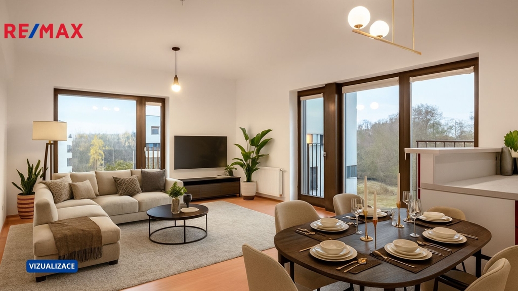 Byt je vhodný pro rodinu i pár, který hledá klidné a moderní bydlení.