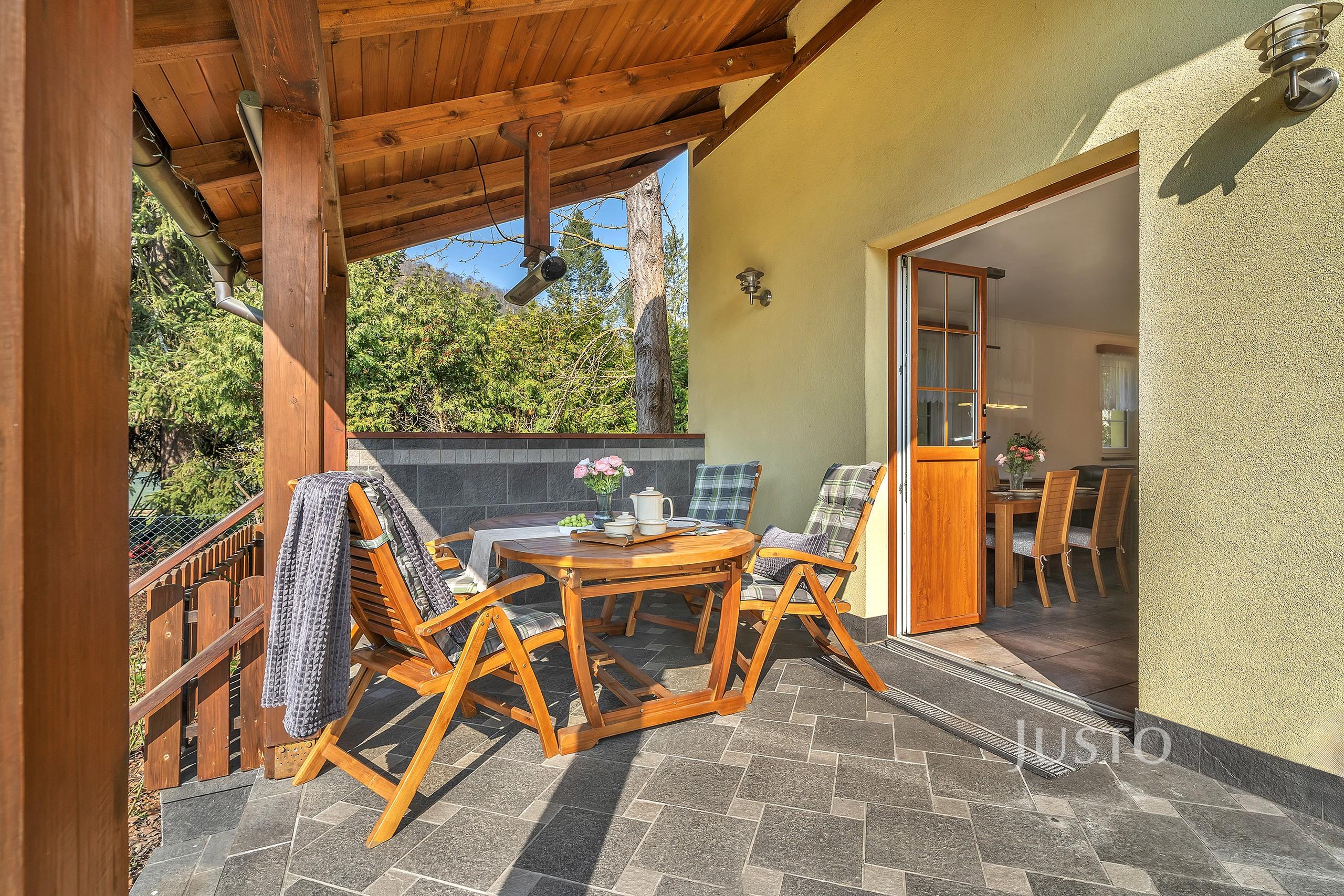 Chata stojí na pozemku o celkové ploše cca 646 m² a nabízí užitnou plochu cca 120 m².