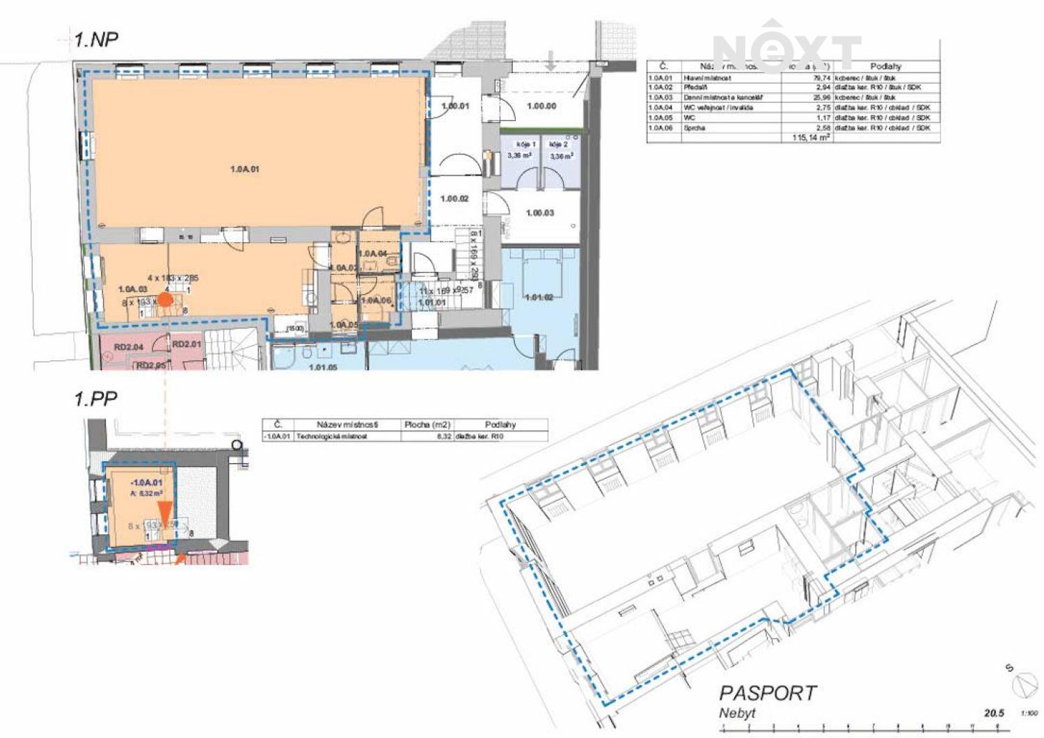 Vchod do nebytového prostoru je situován z ulice Masarykova. Užitná plocha činí 123,46 m2. Dle projektové dokumentace bude mít prostor následující podobu: 1.NP - předsíň (2,94 m2), hlavní místnost (79,74 m2), 2x WC (2,75 m2 a 1,17 m2), sprcha (2,58 m2), denní místnost a kancelář (25,96 m2). 1.PP - technologická místnost (8,32 m2). Vytápění a ohřev vody je zajištěn tepelným čerpadlem (vzduch, voda). Vstup do budovy bude bezbariérový.