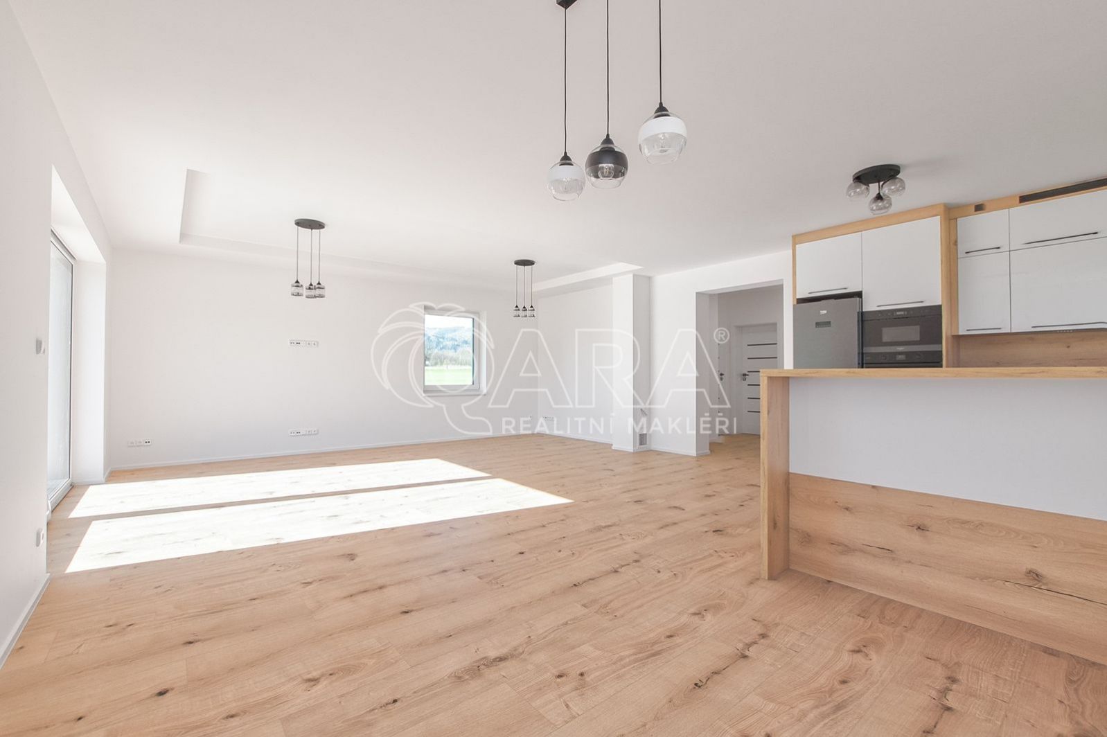 Moderní kuchyňská linka zahrnuje nové spotřebiče, včetně elektrické trouby, indukční desky, myčky, mikrovlnky a lednice. Obývací pokoj je navíc připraven na instalaci krbu nebo krbových kamen.